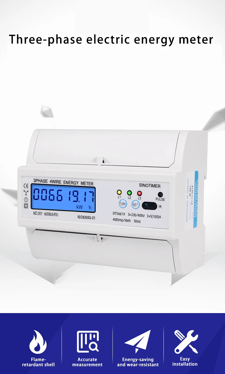 Цифровой счетчик электроэнергии DTS6619, 7P, 380 В, а, с ЖК-дисплеем и подсветкой