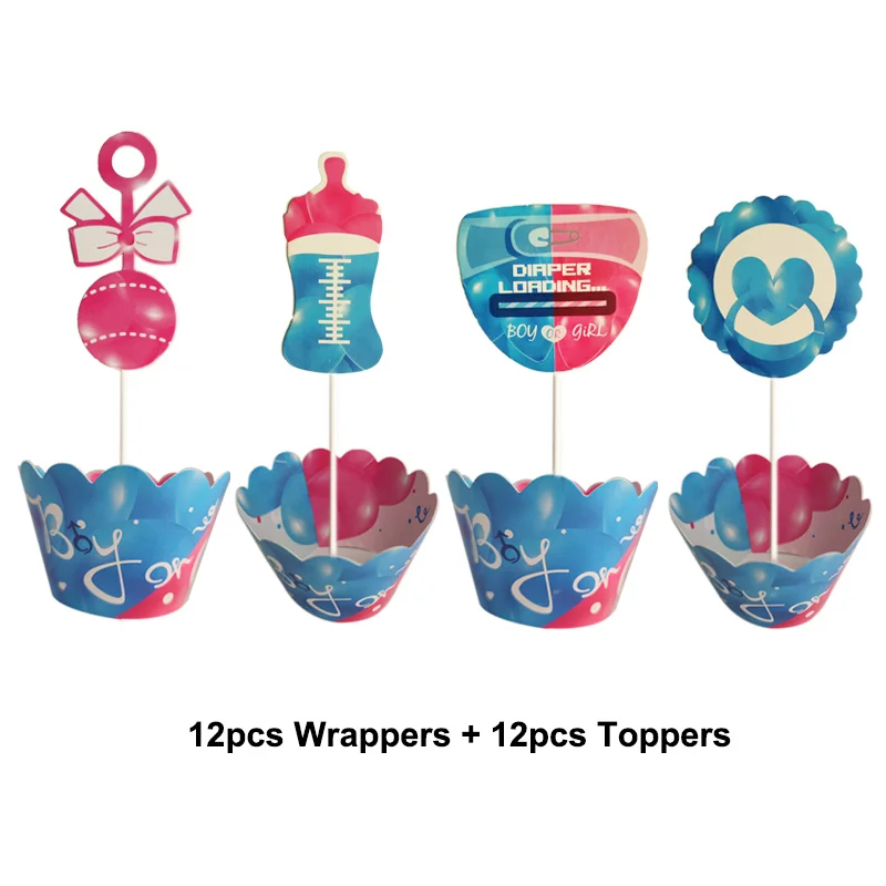 Пол раскрывает вечерние украшения для детского душа для мальчиков или девочек баннер Скатерть 36 шар торт Топпер Резак Плесень наклейки