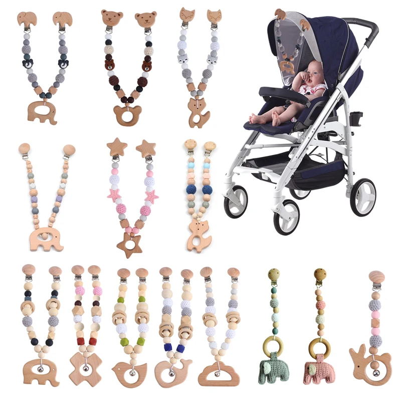 Деревянные подвесные игрушки для детской коляски, подвесные игрушки в тренажерный зал, мобильные погремушки-погремушки для детской коляски, Силиконовые бусы для прорезывания зубов