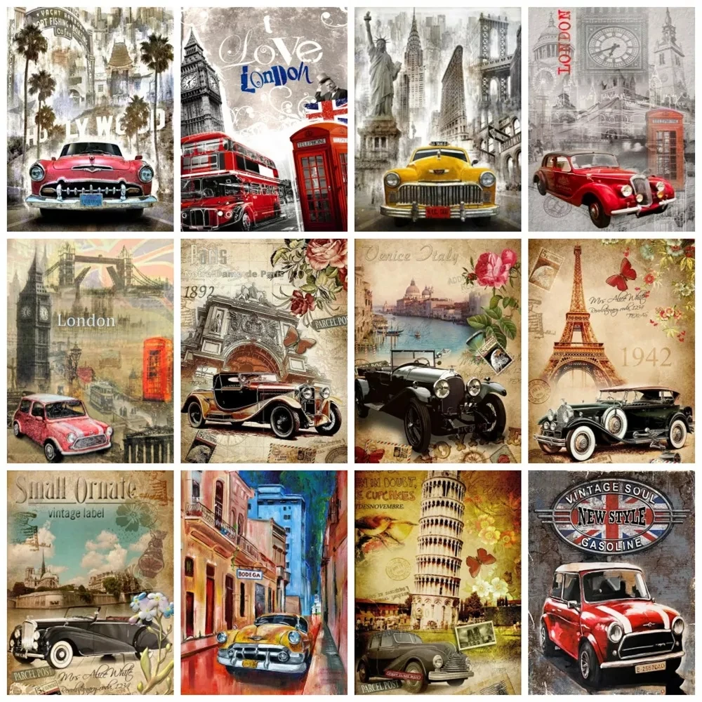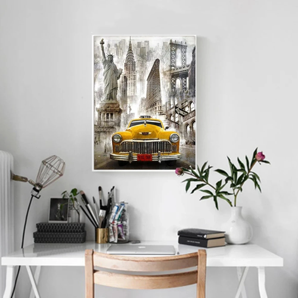 AMY-алмазная живопись, мозаика, городской автомобиль, пейзаж, квадратнаякруглая Алмазная вышивка, строительство, ландшафт, Декор для дома