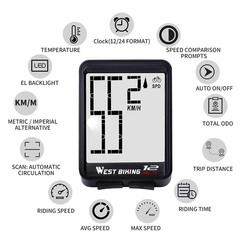 Велосипедный компьютер, большой экран, водонепроницаемый, проводной и беспроводной, одометр, подсветка, спидометр, велосипедные аксессуары