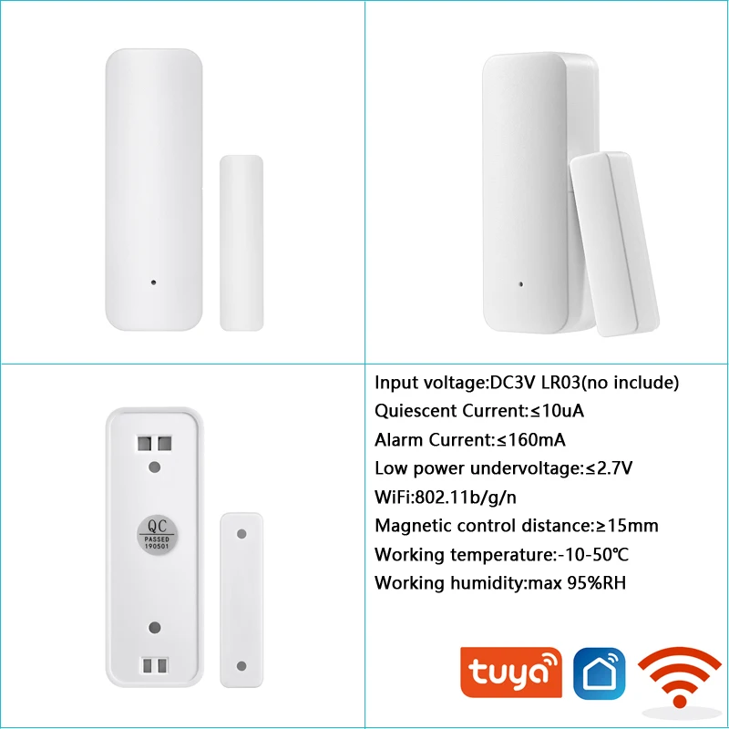 Умные детекторы открытиязакрытия дверей, приложение Smart Life, Wi-Fi датчик окон, работает с Alexa,Google Home