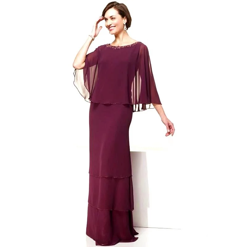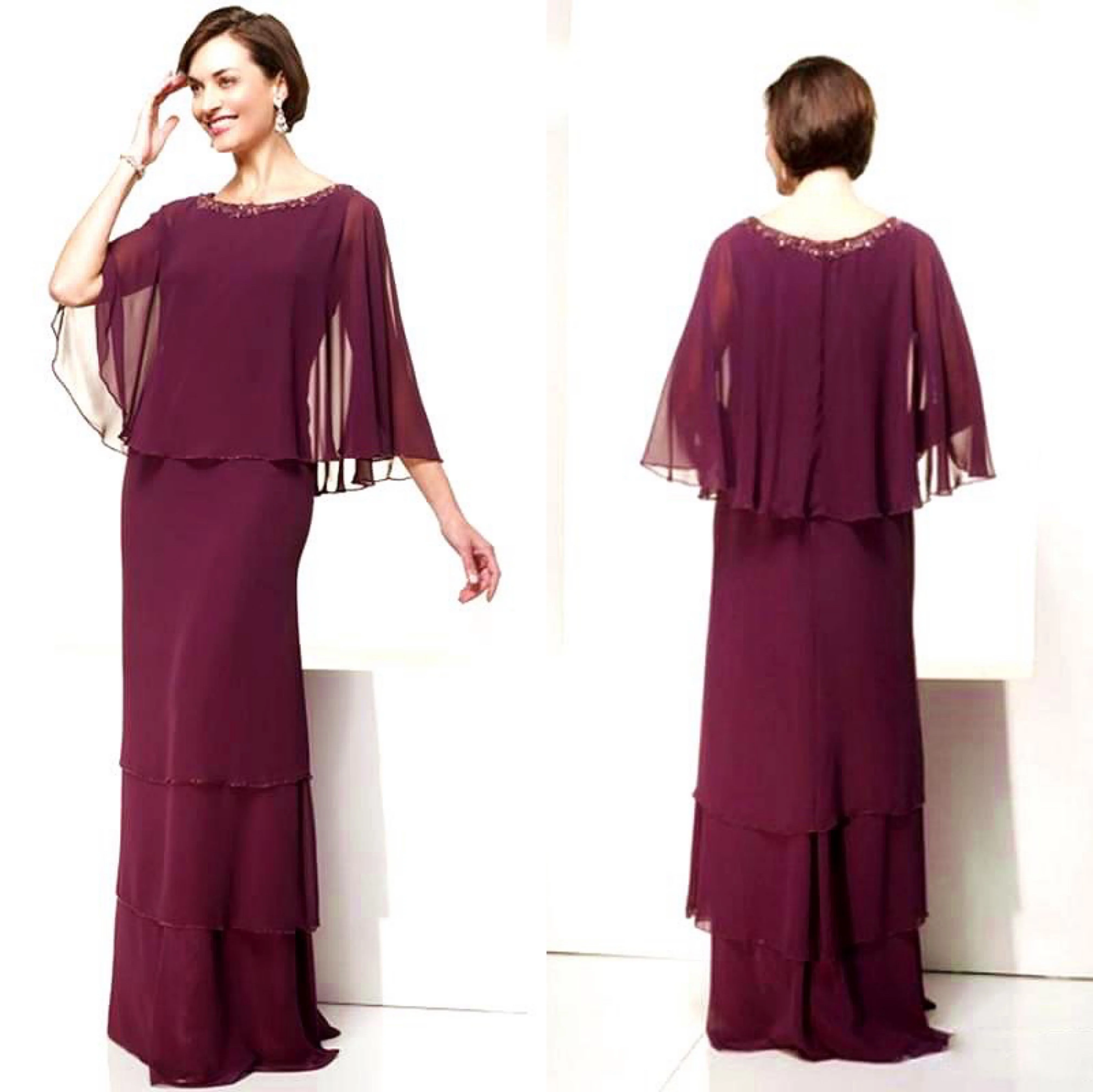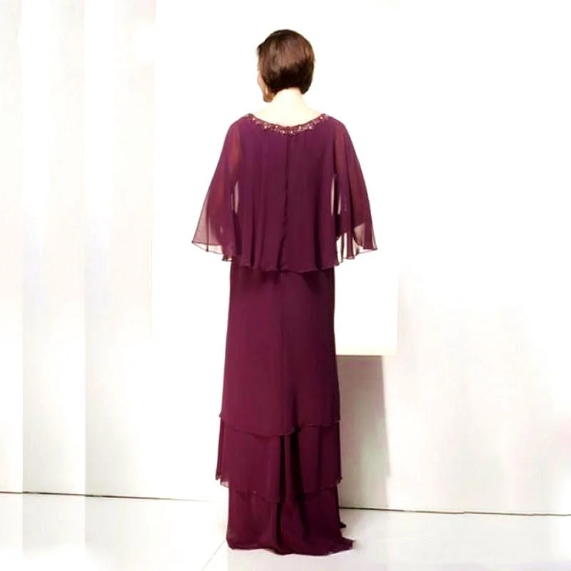 Шифоновое платье для матери невесты, Бордовое платье с запахом, накидкой, круглым вырезом, блестками и бисером, официальное, свадебное, вечернее платье для матери, Новинка
