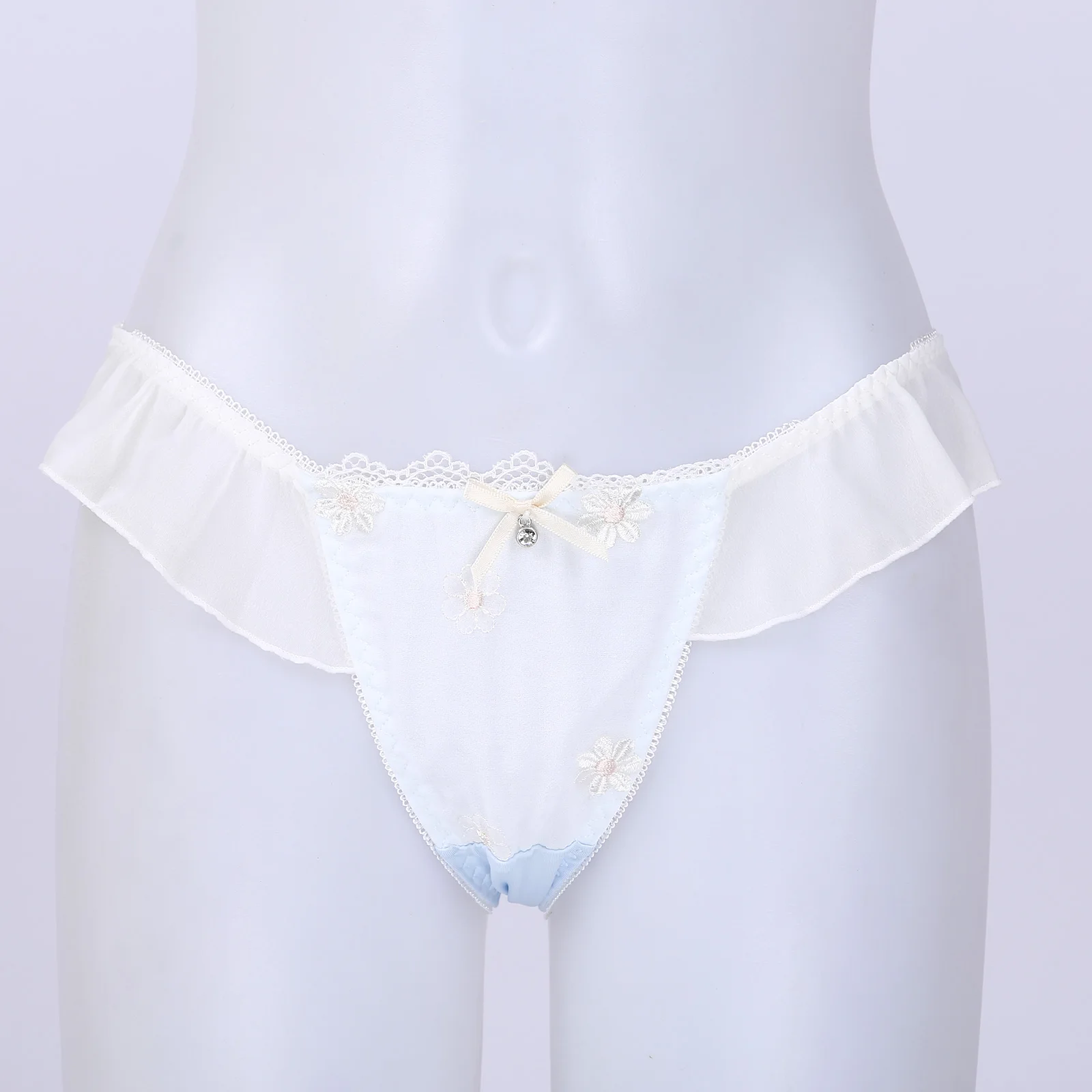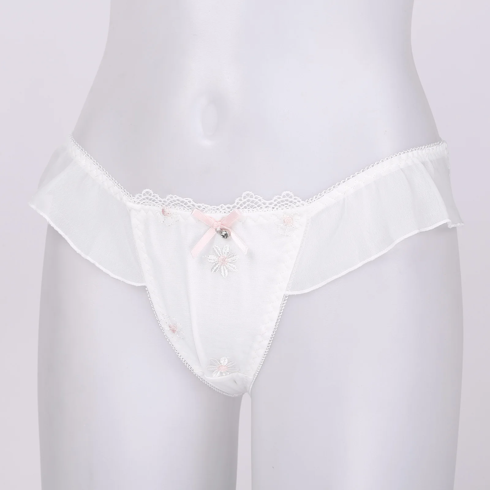 Трусы мужские с цветочной вышивкой, нижнее белье, трусы с заниженной талией, с оборками, кружевная отделка, эластичный пояс, трусы