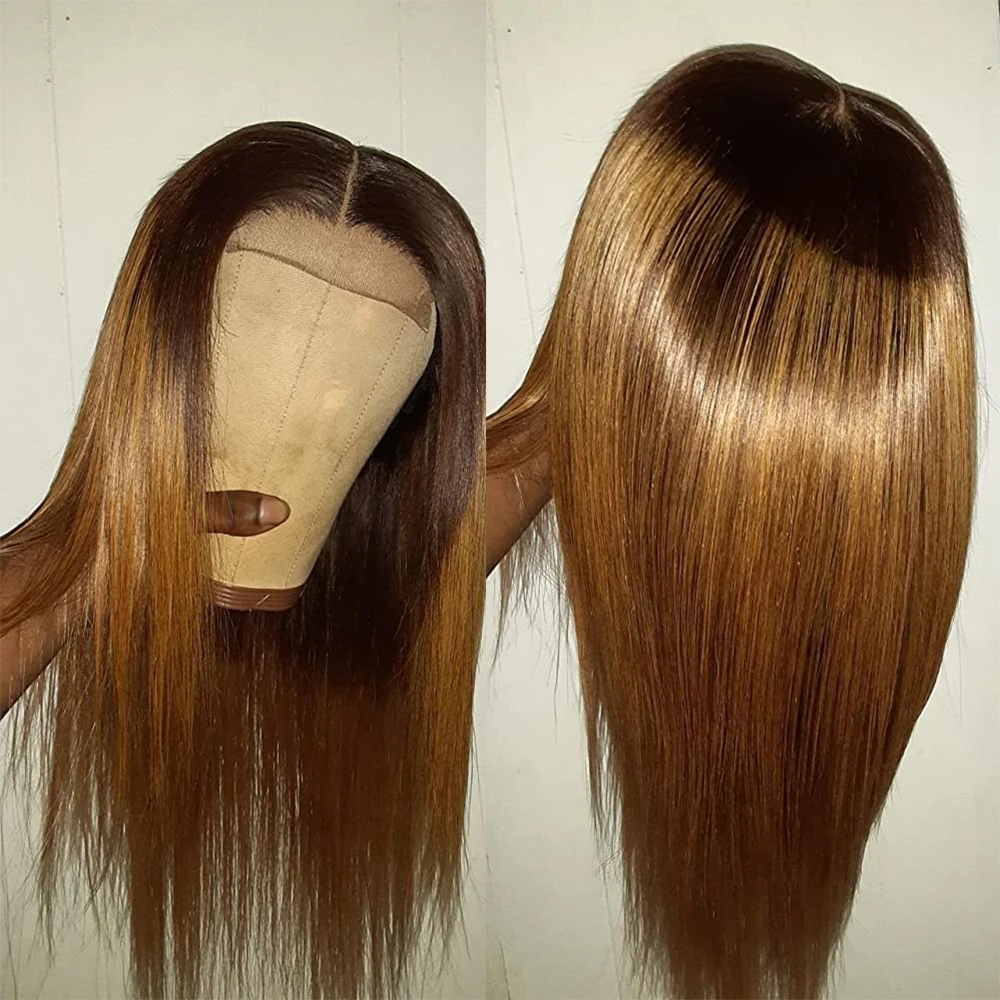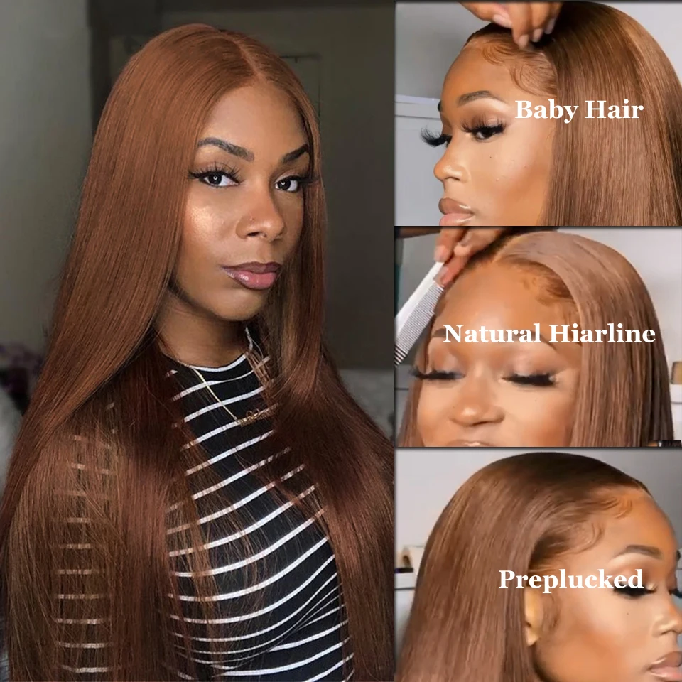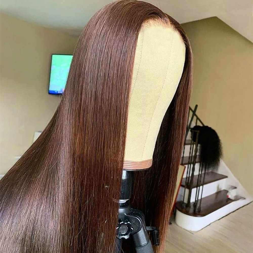 Парики из натуральных окрашенных каштановых волос для женщин, 180% предварительно выщипанные бразильские волосы Реми, прямые 4x4 T, парик