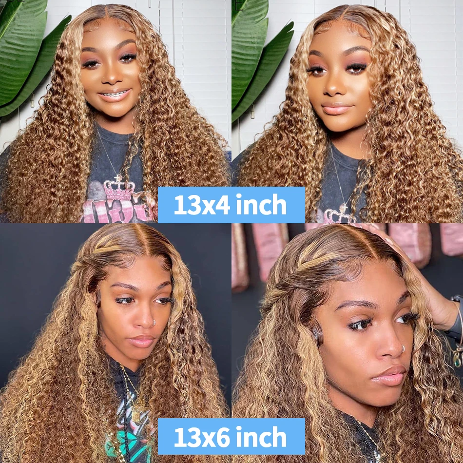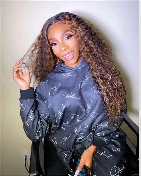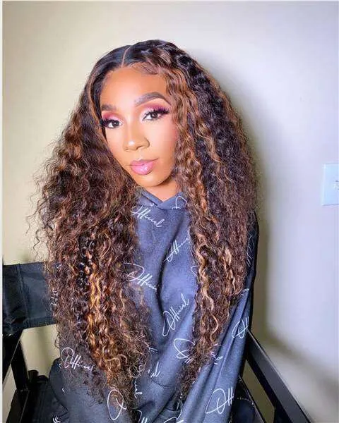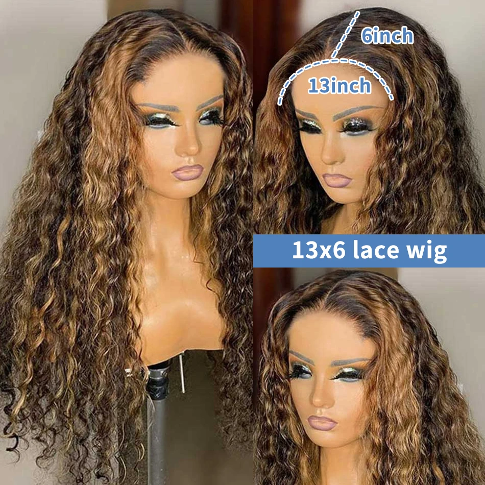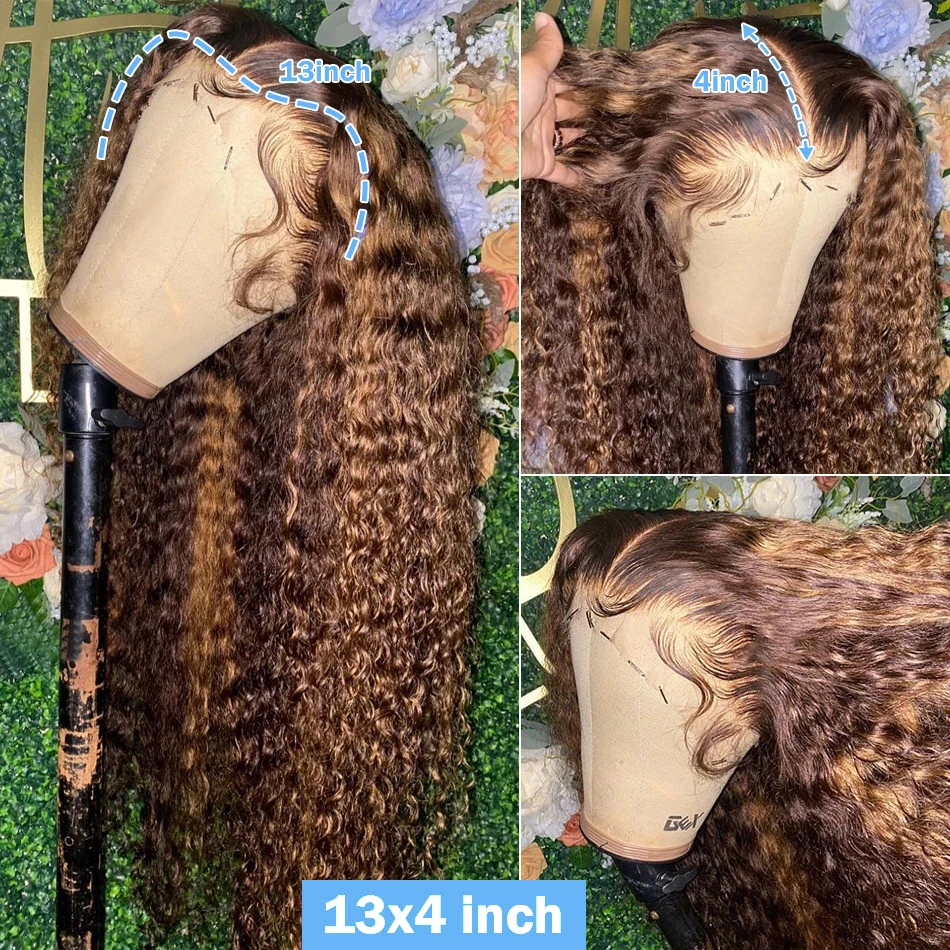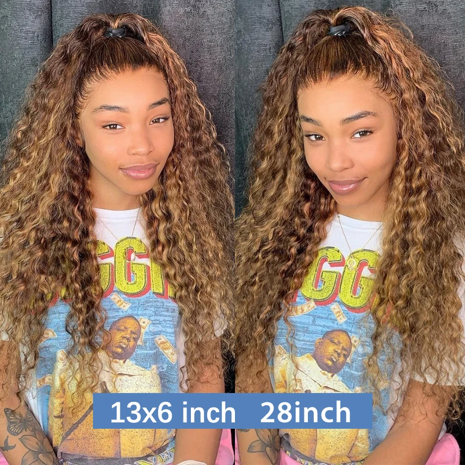 30 40 дюймов, с подсветкой, Омбре, вьющиеся 13x 6, кружевные передние человеческие волосы, парики для женщин
