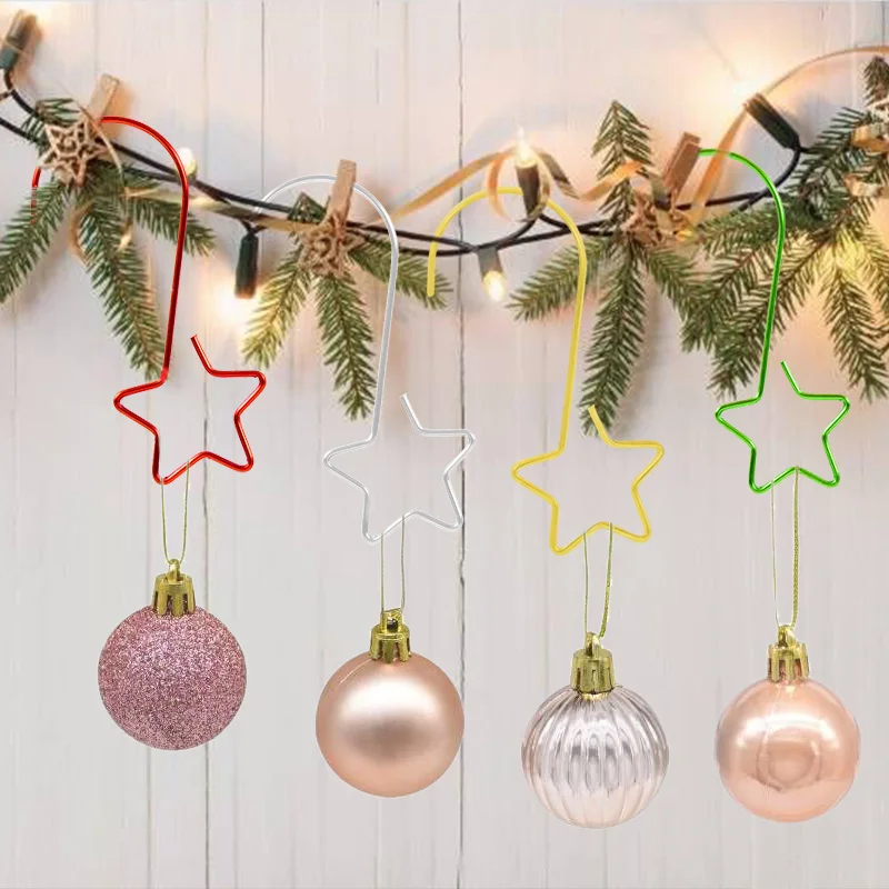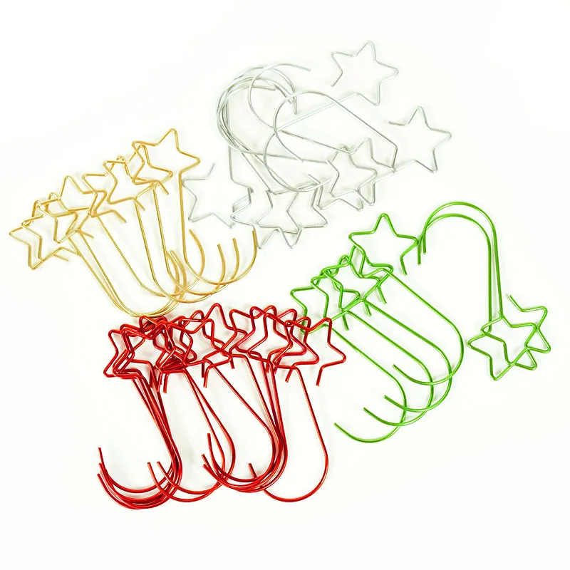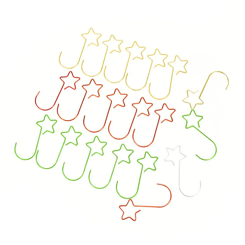 20 шт Мини металлическая звезда, крючки, станок и рождественской елки крюк гирлянда подвесной орнамент золотого, серебристого и красного цвета, зеленый крючок-вешалка для вечерние поставки