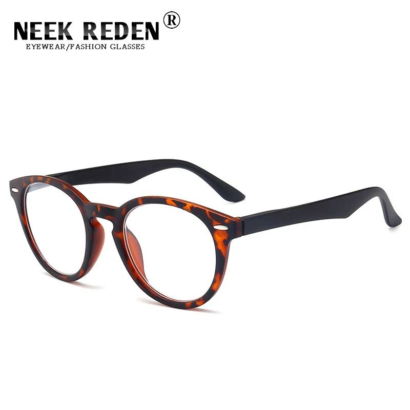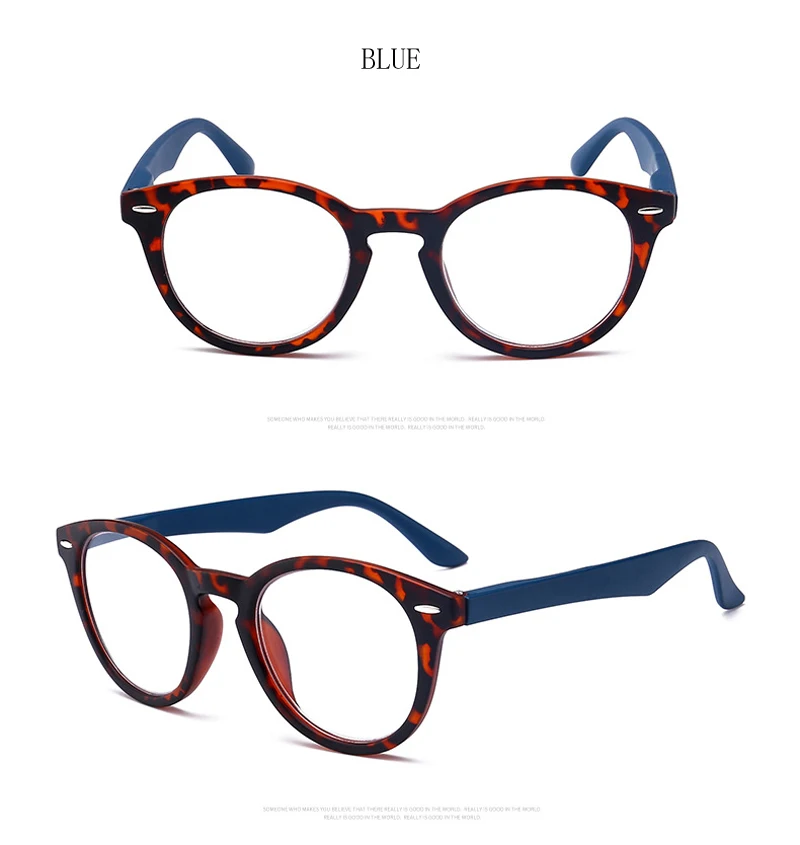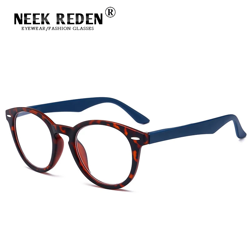 Мужские и женские круглые очки для чтения, пресбиопические очки с заклепками, с диоптриями, + 0,5, + 0,75, + 1,25, + 2,25, + 3,25, + 3,75, с синим леопардовым принтом