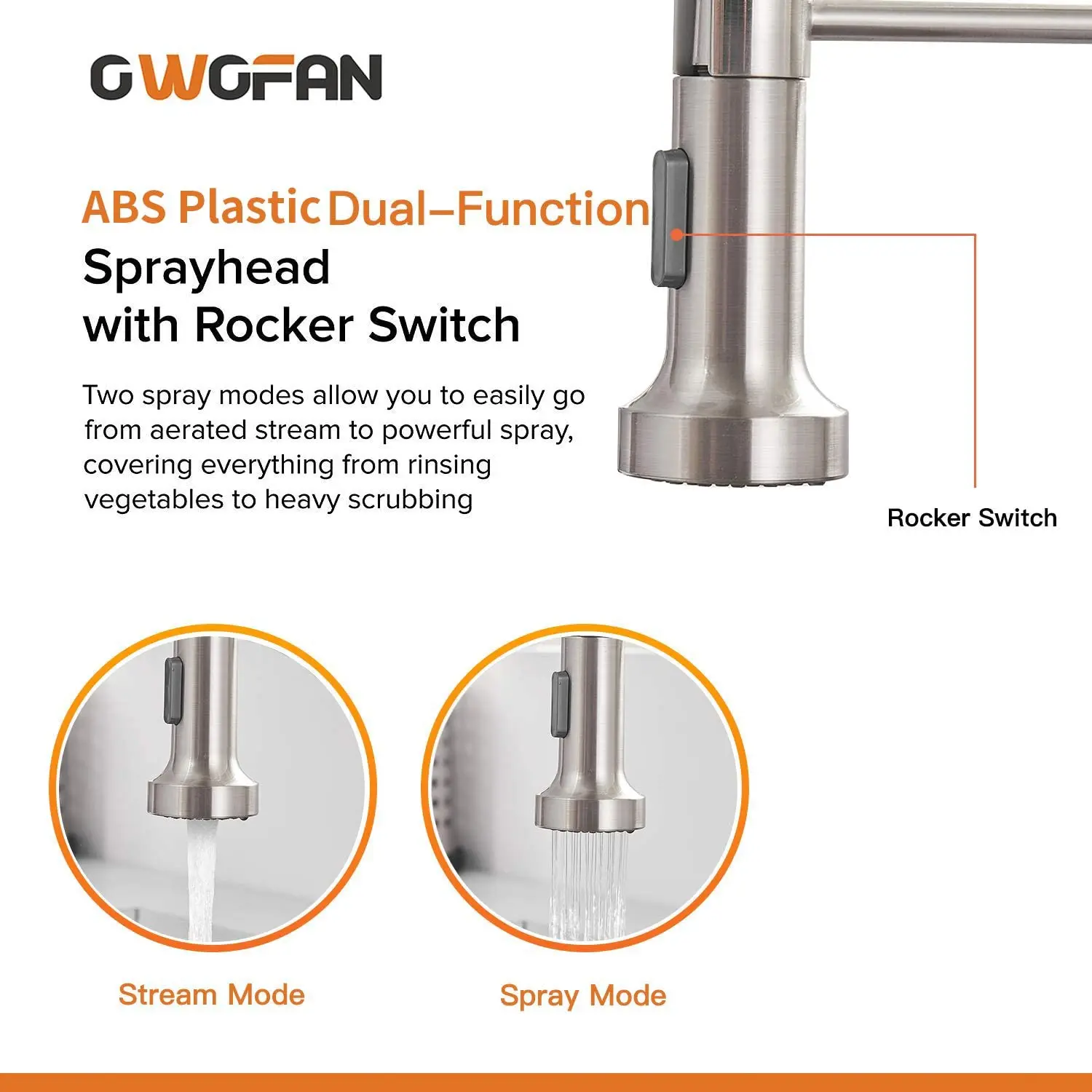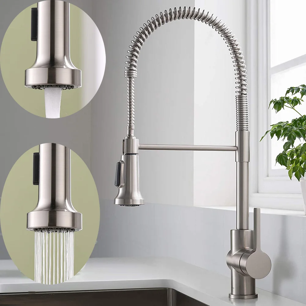 Пружинный кухонный кран, выдвижной боковой распылитель, смеситель с двойным носиком и одной ручкой, смеситель для раковины, смесители для кухни с вращением на 360 градусов.