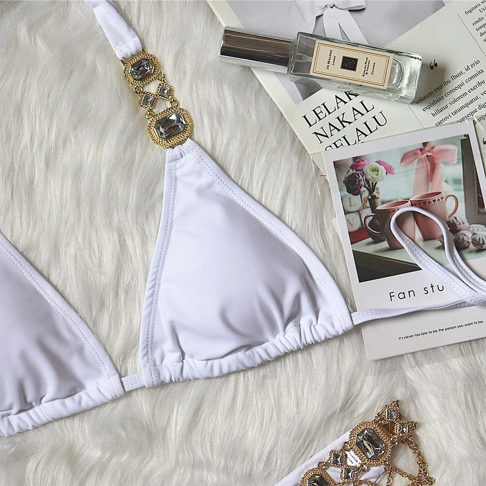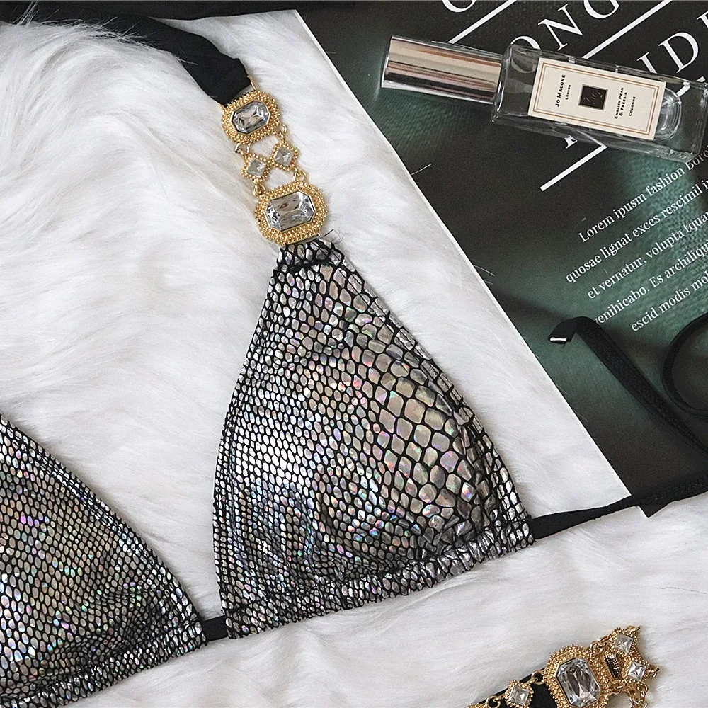 Новинка 2021, Женский раздельный купальник со стразами, разные цвета, сексуальное бикини из двух частей