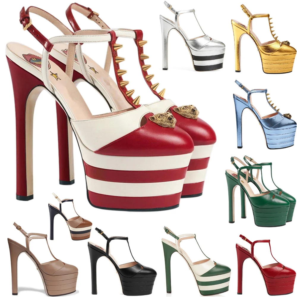 Женские босоножки на высоком массивном каблуке с Т-образным ремешком и заклепками, пикантные вечерние туфли с круглым носком, популярные летние женские босоножки с круглым носком, женская обувь
