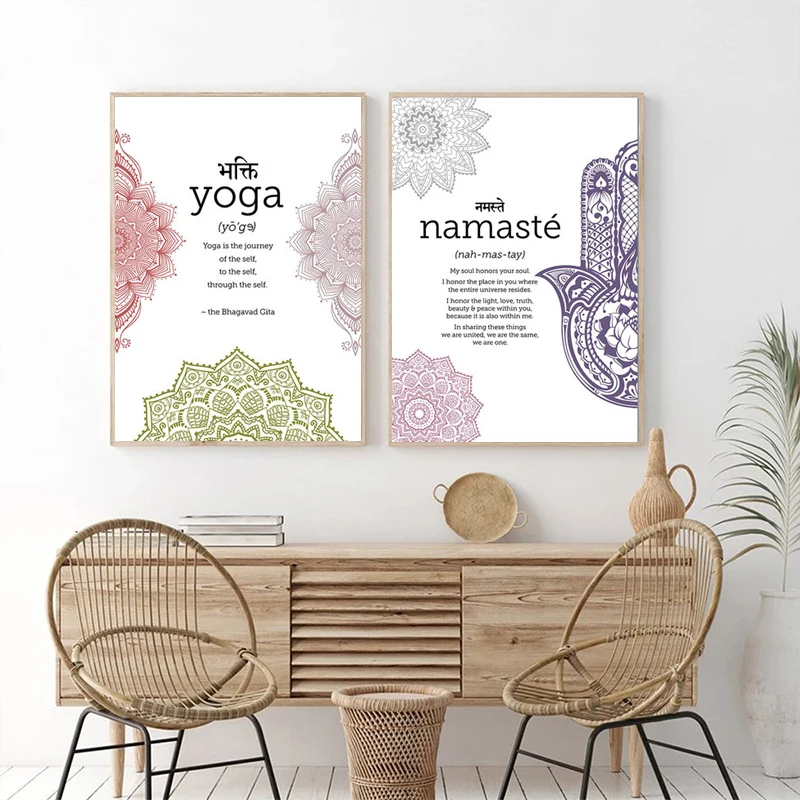 Художественный постер Yoga Namaste Hamsa и печать текста, цитаты, м...
