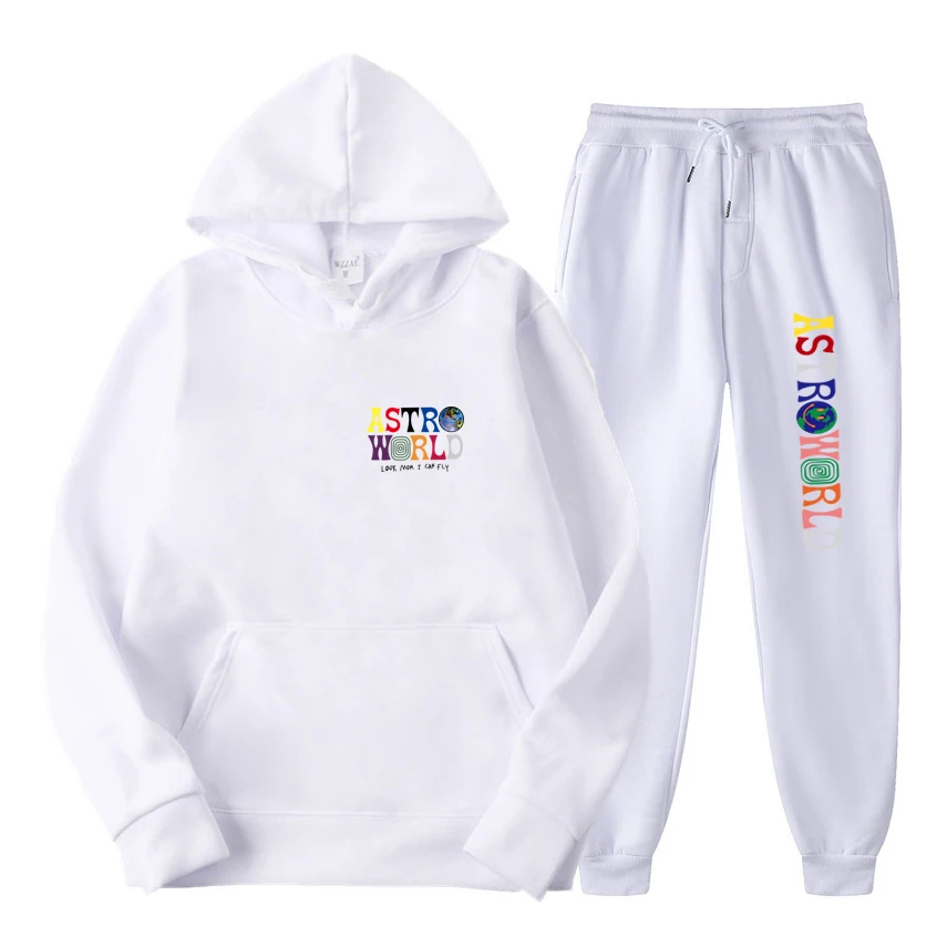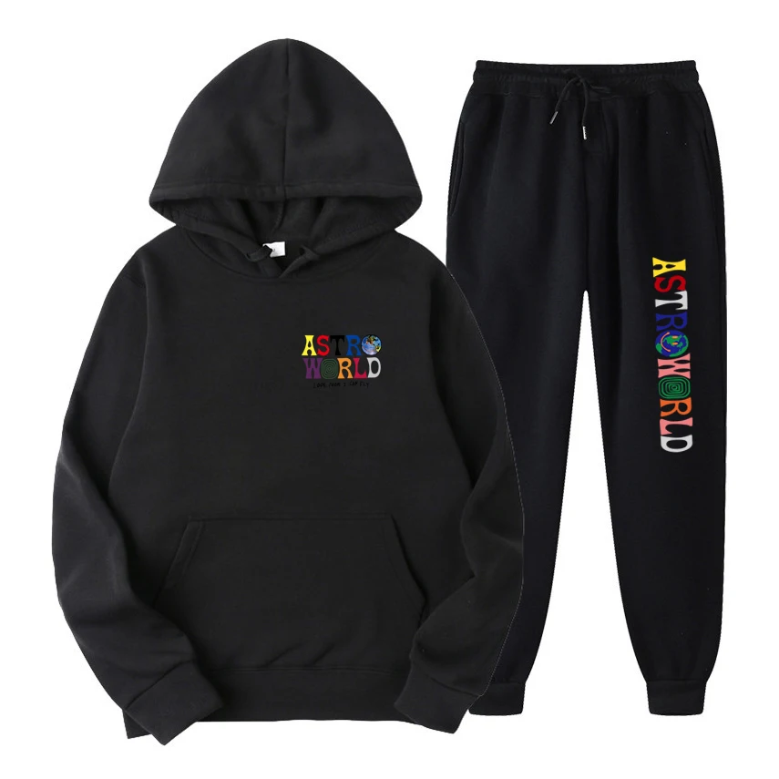 Мужская повседневная флисовая толстовка с капюшоном и штаны, с надп...