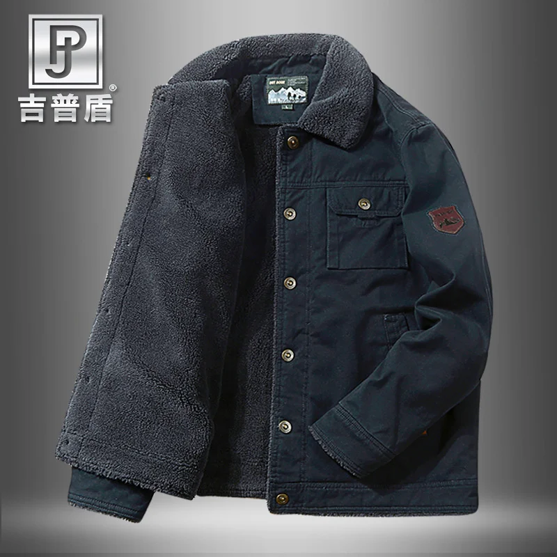 Зимнее пальто для мужчин среднего возраста, утепленная куртка из овечьей шерсти и плюша