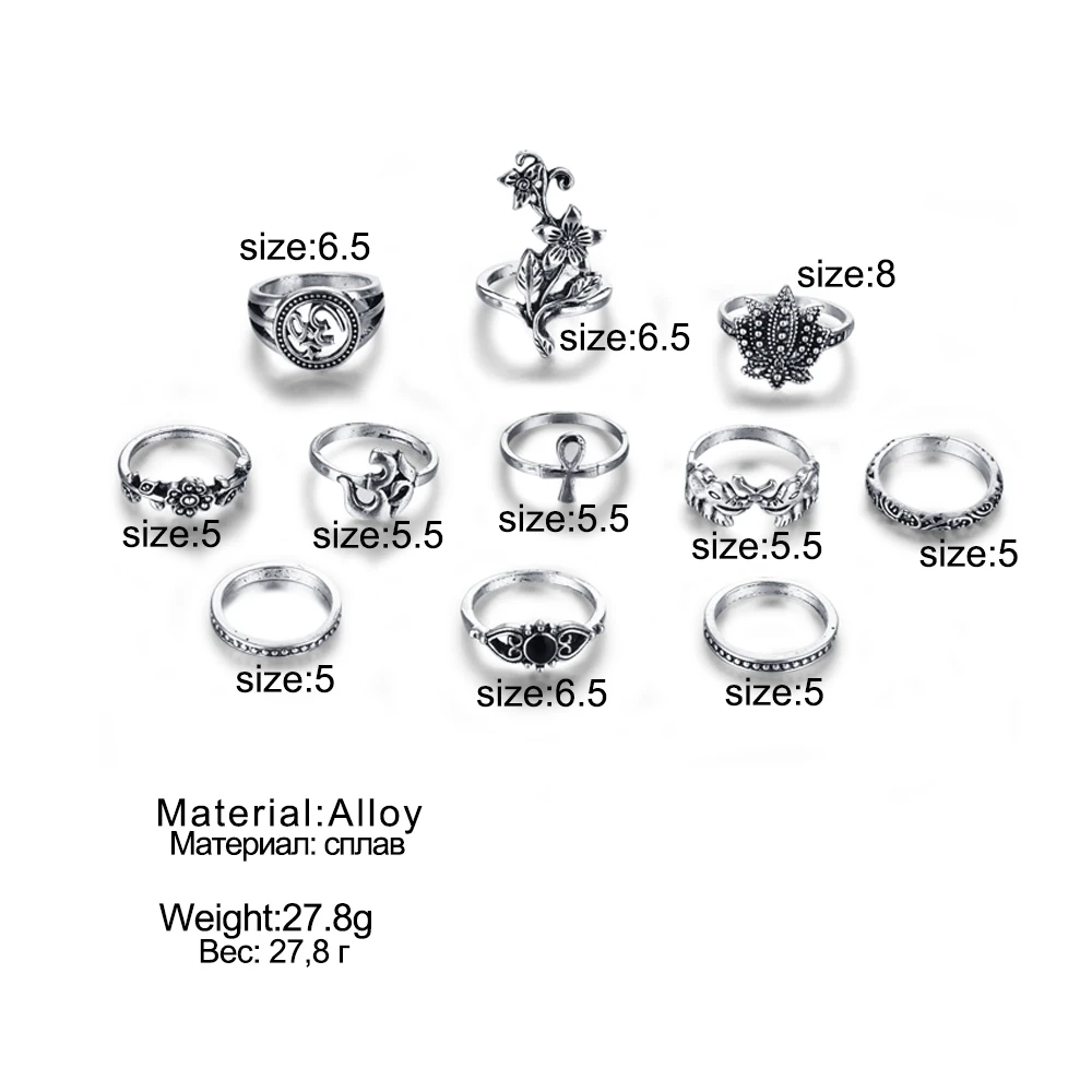 Винтажные антикварные серебряные кольца FNIO, набор из искусственной смолы с кристаллами для женщин и мужчин, богемные украшения, ювелирные изделия 2021