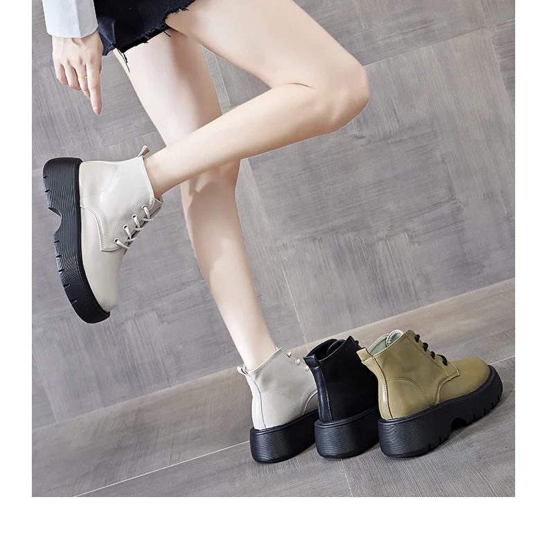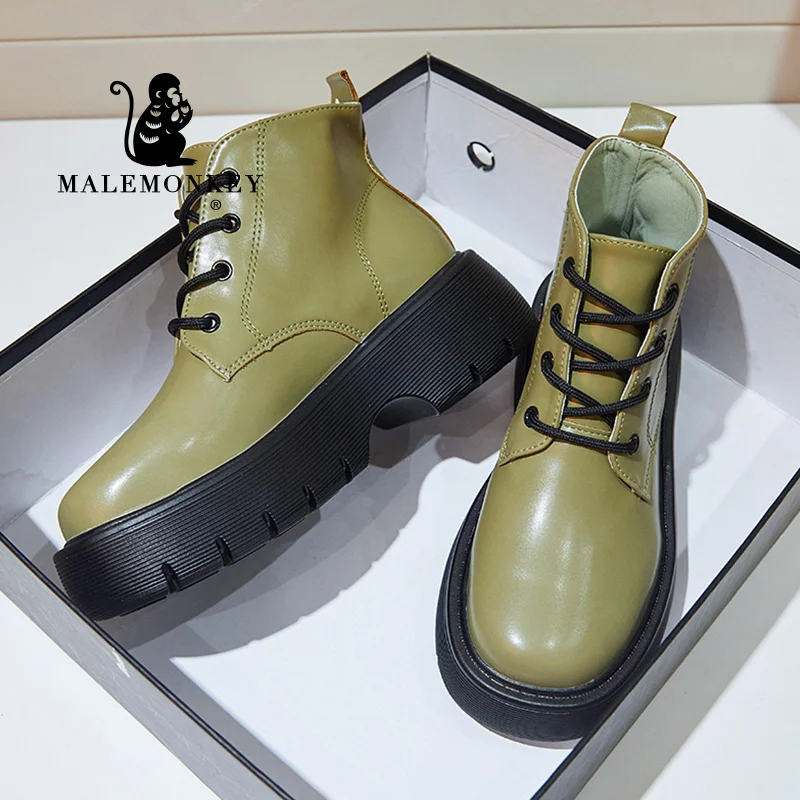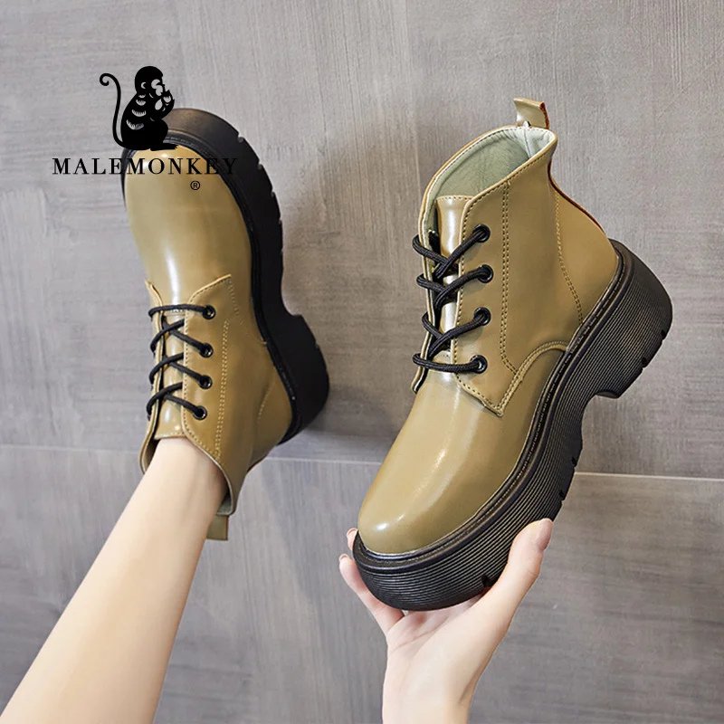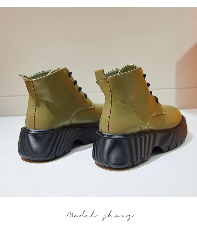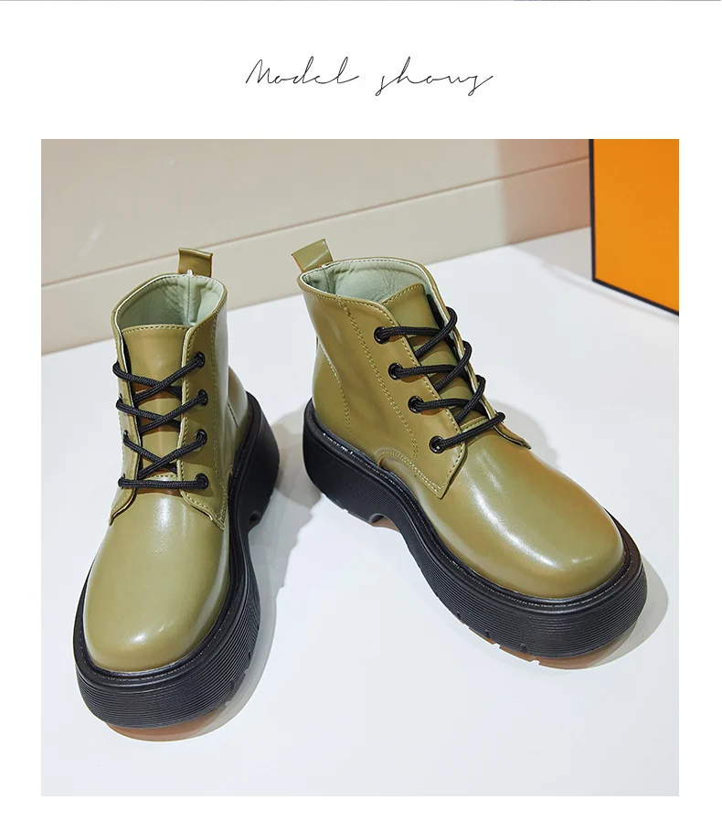 Модные ботинки на платформе; Обувь на массивном каблуке; Цвет Черный; Коллекция 2021 года; Сезон осень; Уличная обувь с круглым носком на шнуровке в стиле ретро; Короткие женские мотоботы