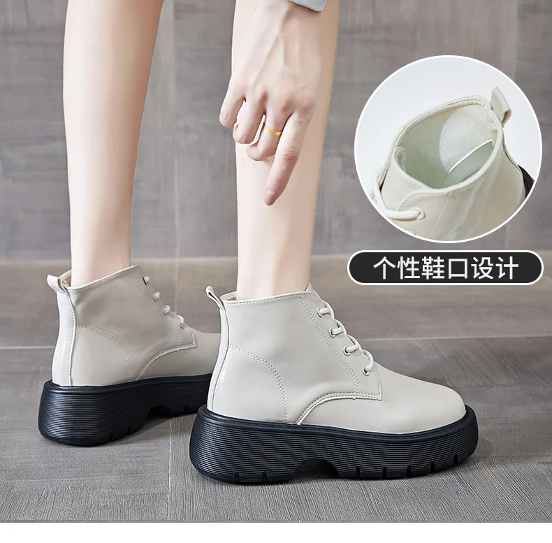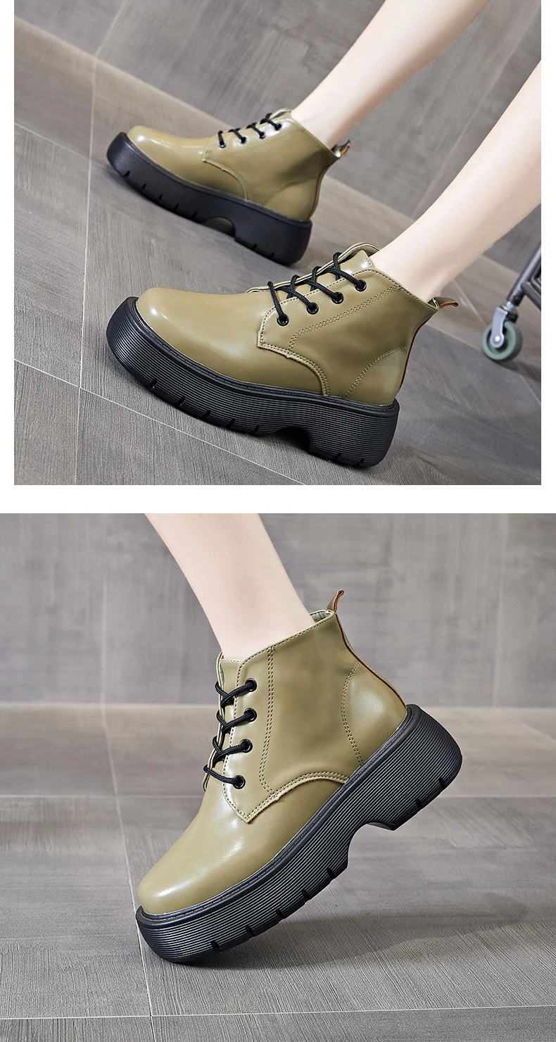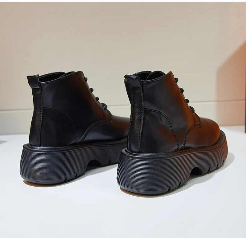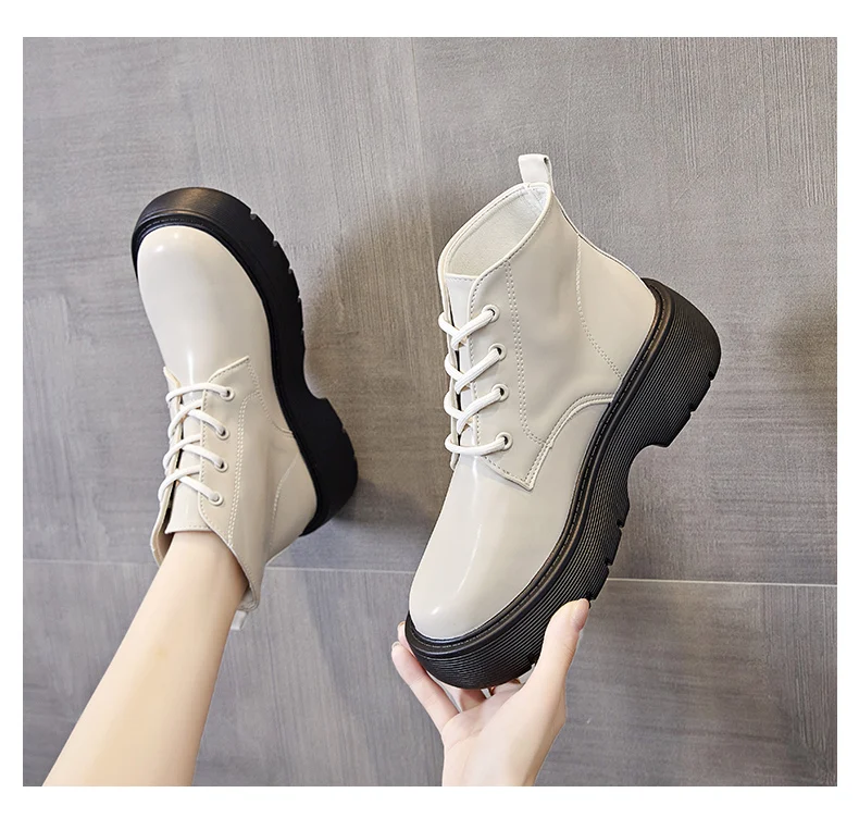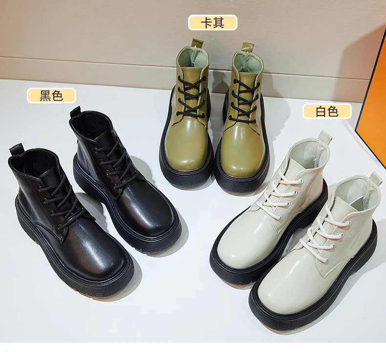 Модные ботинки на платформе; Обувь на массивном каблуке; Цвет Черный; Коллекция 2021 года; Сезон осень; Уличная обувь с круглым носком на шнуровке в стиле ретро; Короткие женские мотоботы