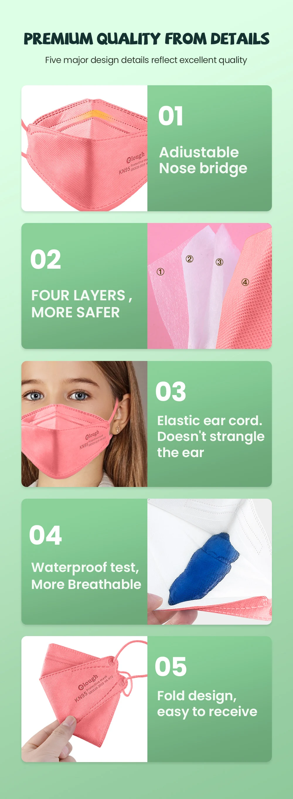 ④ Высококачественный защитный эффект. Его защитный эффект такой же уровень, как маска KN95 и Европейская маска FFP2.
