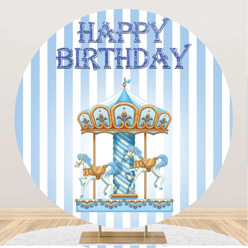Laeacco голубые полосы детский день рождения Портрет фон круглая карусель пользовательский фотографический фото фон для фотостудии
