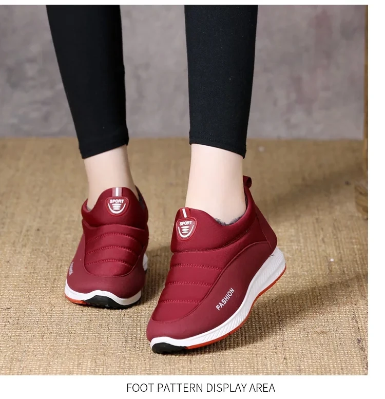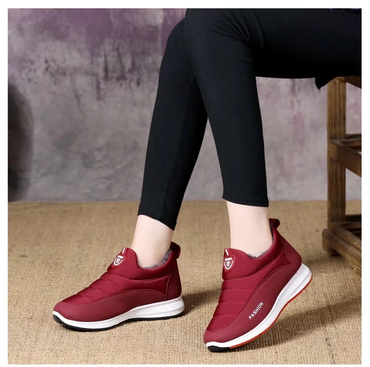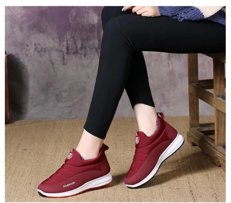 Женские зимние ботинки на меху, красные Нескользящие ботильоны из хлопка и плюша, обувь большого размера 43 для прогулок, 2021