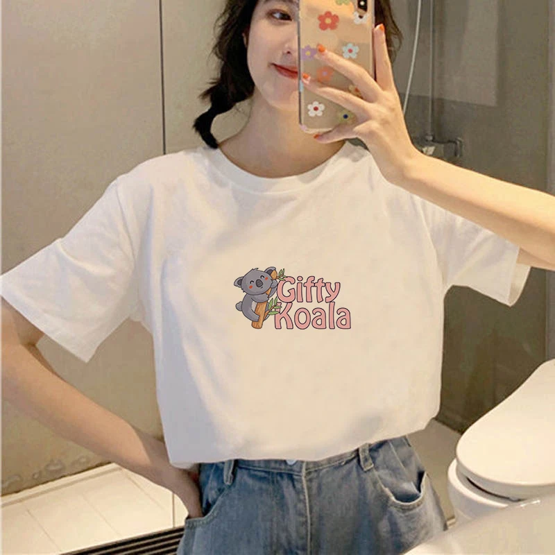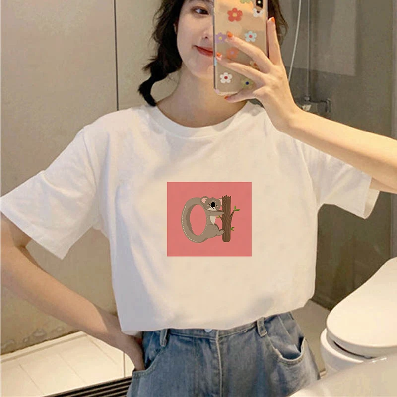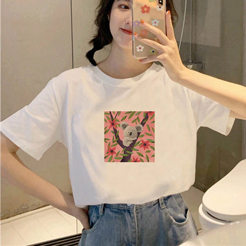 Летняя модная женская футболка с мультипликационным принтом коала, милые женские топы, футболки с круглым вырезом, белая футболка 90-х девушек, женская одежда