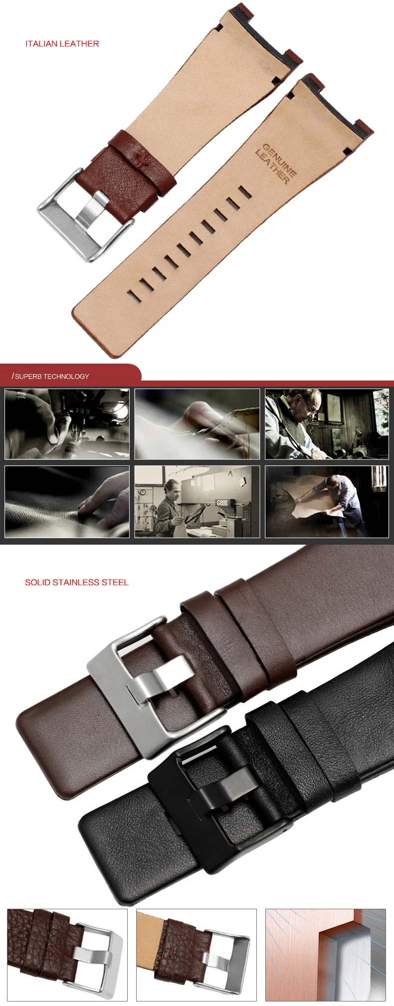 Браслет из натуральной кожи для часов Diesel DZ1216 DZ1273 DZ4246 D...