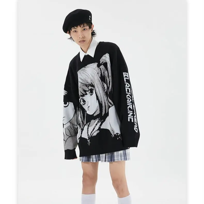 Вязаный свитер в стиле аниме для девочек, мужской уличный свободный...