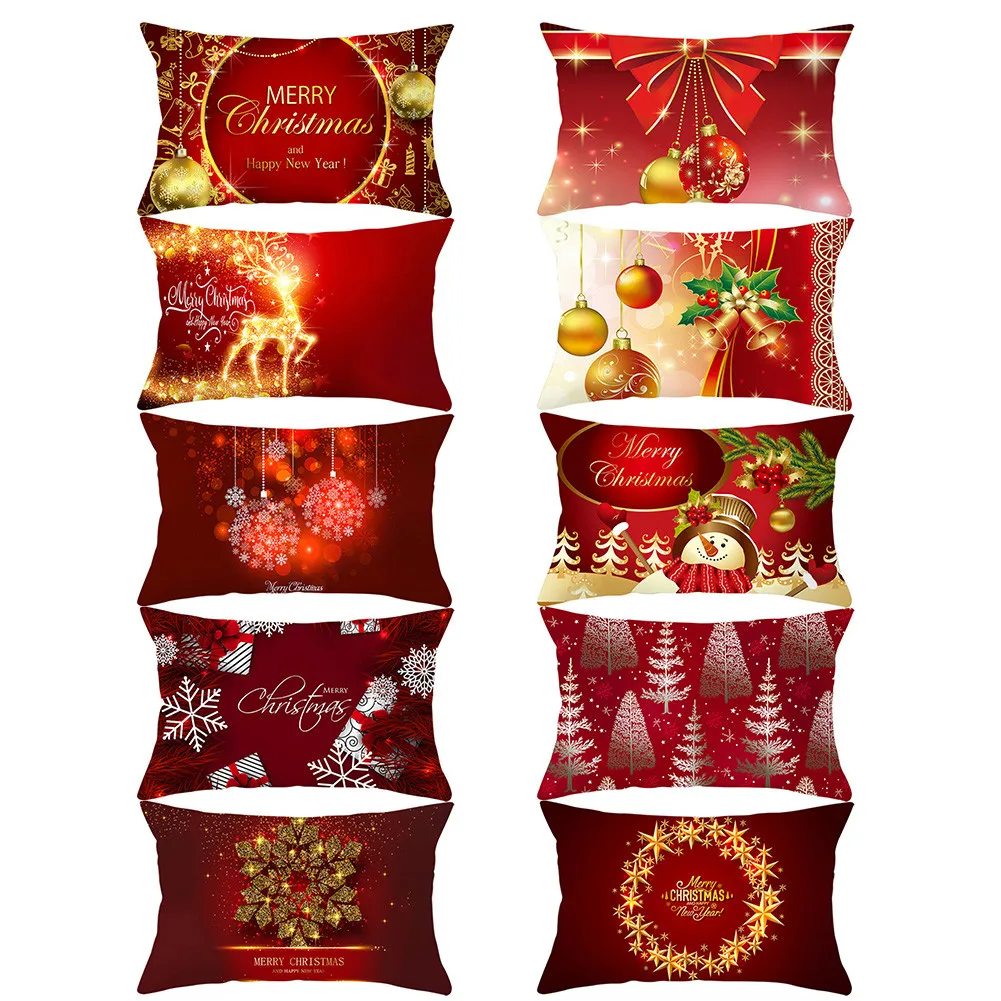 Рождественская наволочка для подушки, наволочка из полиэстера с рождественским принтом лося, декоративные подушки для дивана, наволочки для подушек