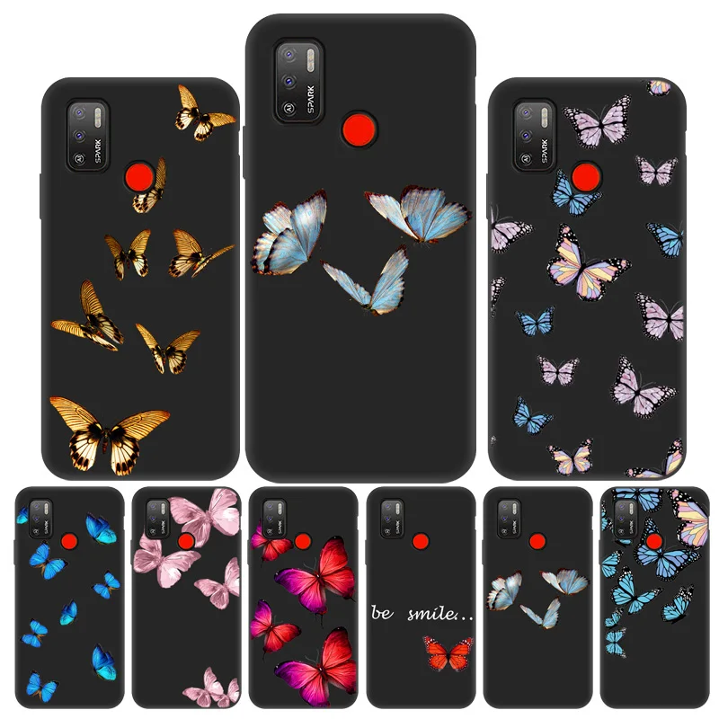 Чехол для телефона Tecno Spark 5 Air Fundas Tecno Spark 6 Air 6 GO 2020 5 Pro Camon 12 15 бампер Бабочка Мягкий силиконовый черный чехол