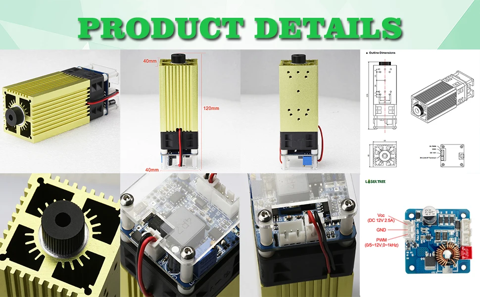 Лазерное дерево 450 нм 40 Вт лазерный модуль, лазерная головка, модуль гравировки резки, технология сжатых точек, Совместимый Мастерстанок с ЧПУ