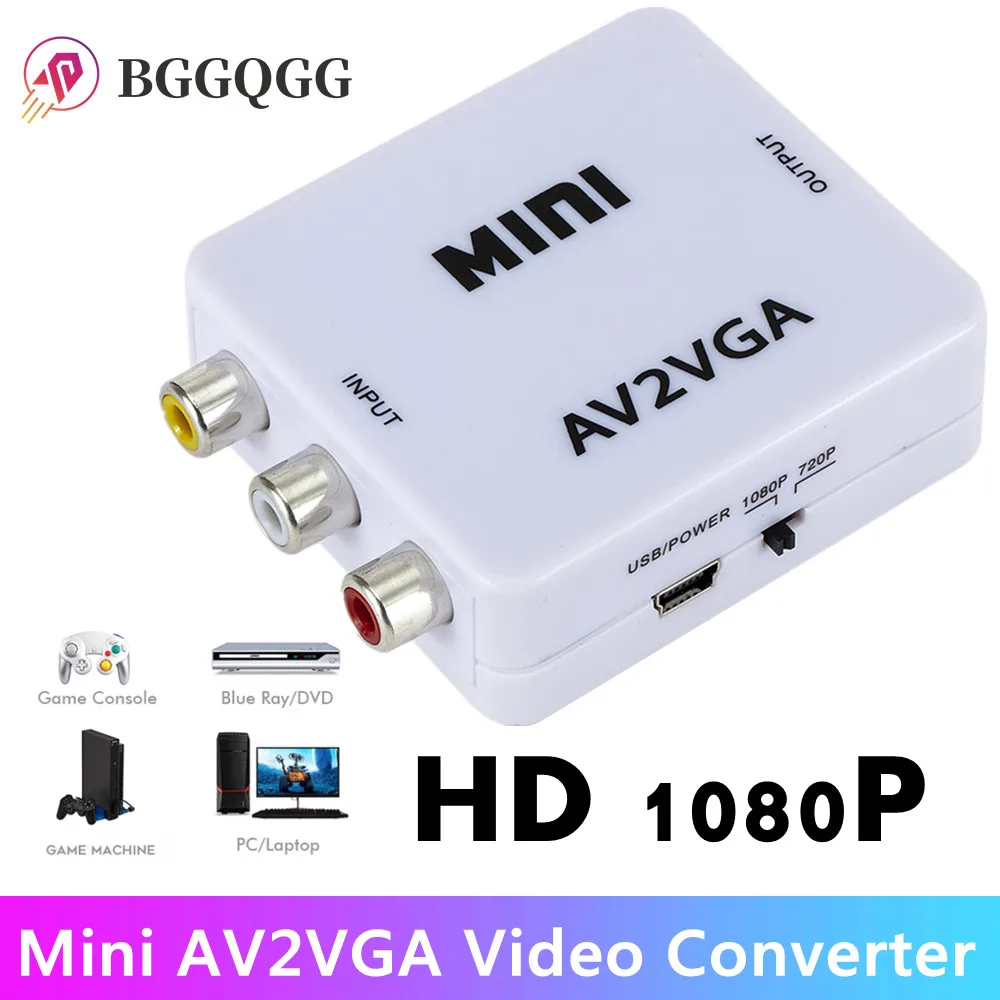 Мини-видеоконвертер 1080P RCA AV на VGA, видеопреобразователь с 3,5 мм аудио AV2VGA CVBS + преобразователь Аудио в HDTV ПК