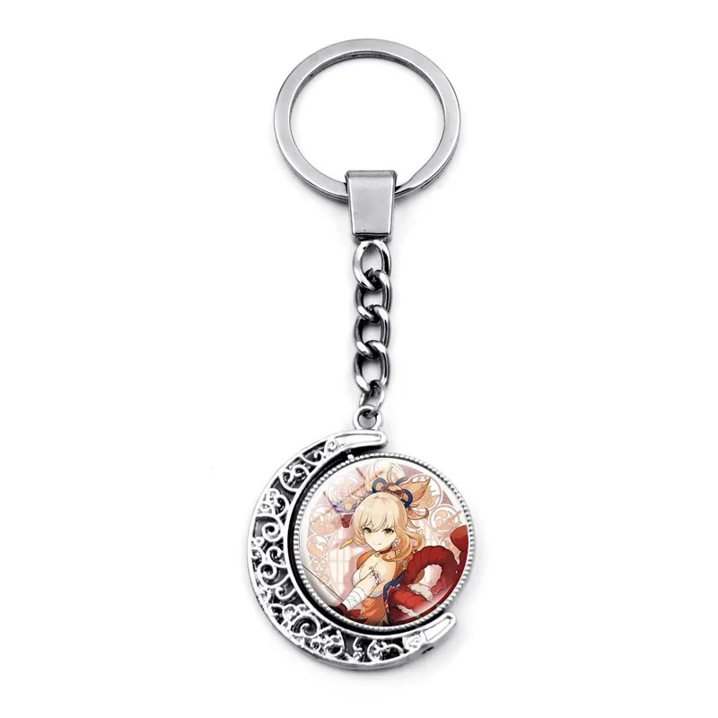 Аниме брелок для ключей, игра Genshin Impact вращающаяся на 360 градусов Подвеска для автомобиля в виде Луны и сумки, ювелирные изделия для косплея, брелок Genshin, металлическое кольцо для ключей