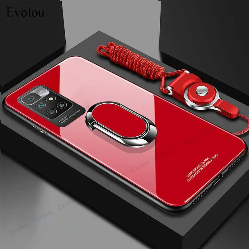 Чехол для телефона Redmi 10, сплошной цвет, закаленное стекло, мягкая рамка, противоударный чехол s для Redmi 10, 5G подставка с магнитным кольцом, задняя крышка