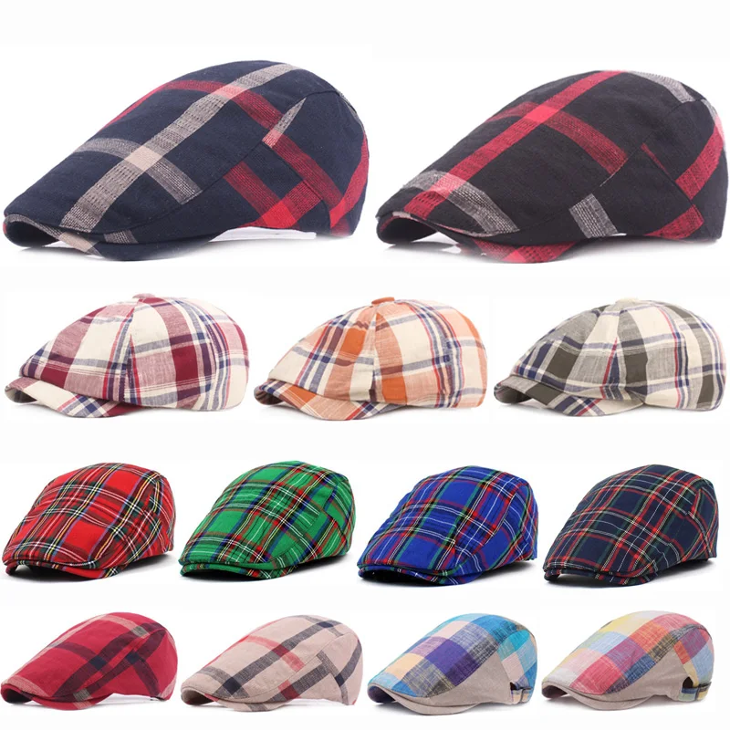 Винтажный клетчатый берет, кепки для мужчин и женщин в британском с...