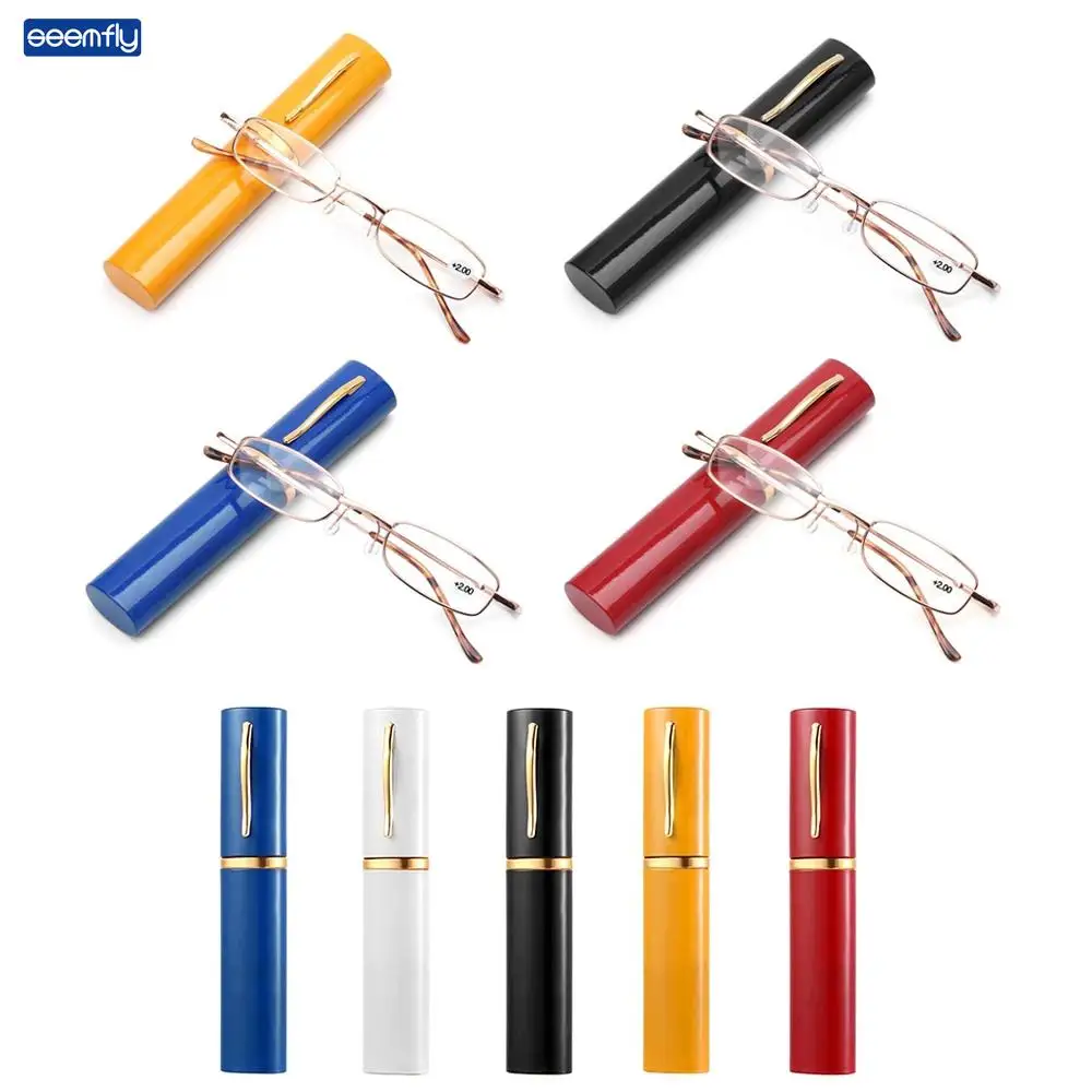 Ультралегкие очки для чтения Seemfly с чехлом для очков, портативный металлический чехол унисекс для пресбиопических очков с диоптриями + 1 + 1,5 + 2 + 3 + 4