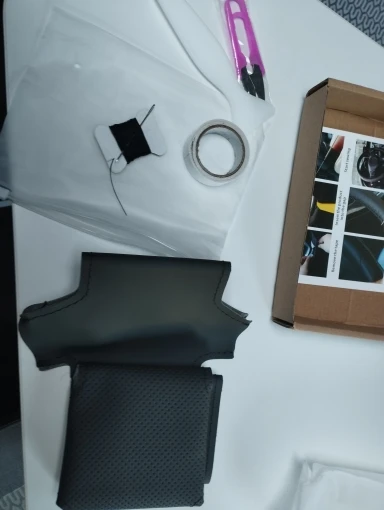 Крышка рулевого колеса *1Игла *1Нить *1Двусторонняя клейкая лента *1Лезвие *1Наперсток *1
