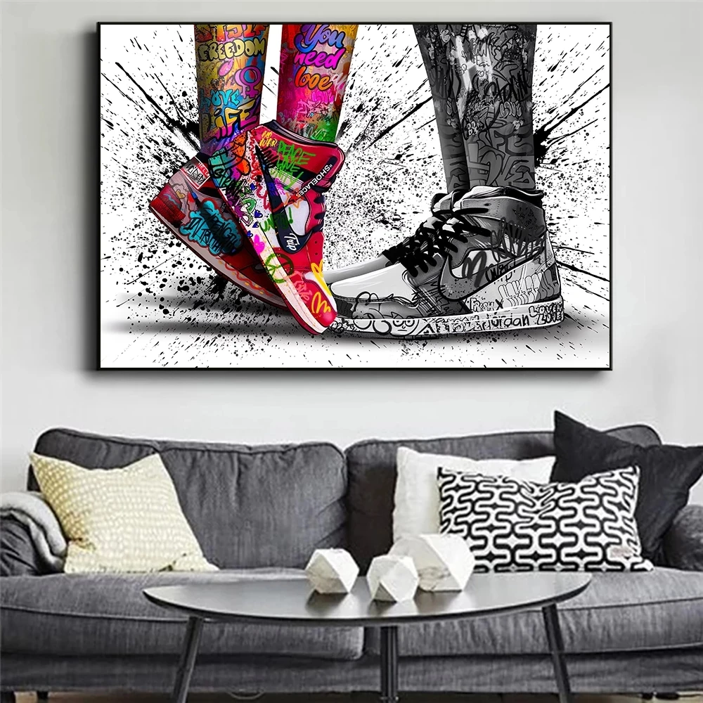 Плакат игрока и принт баскетбольной обуви, неоновые огни, холст, аб...