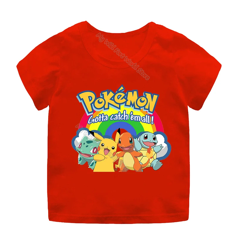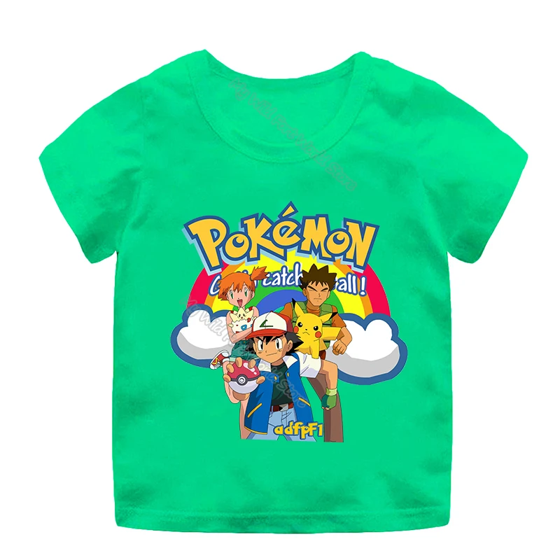 Футболка с покемоном для маленьких девочек и мальчиков, детская одежда Пикачу, детская хлопковая рубашка в стиле аниме, радуга, пепельный Кетчум, Мультяшные футболки, детские летние топы