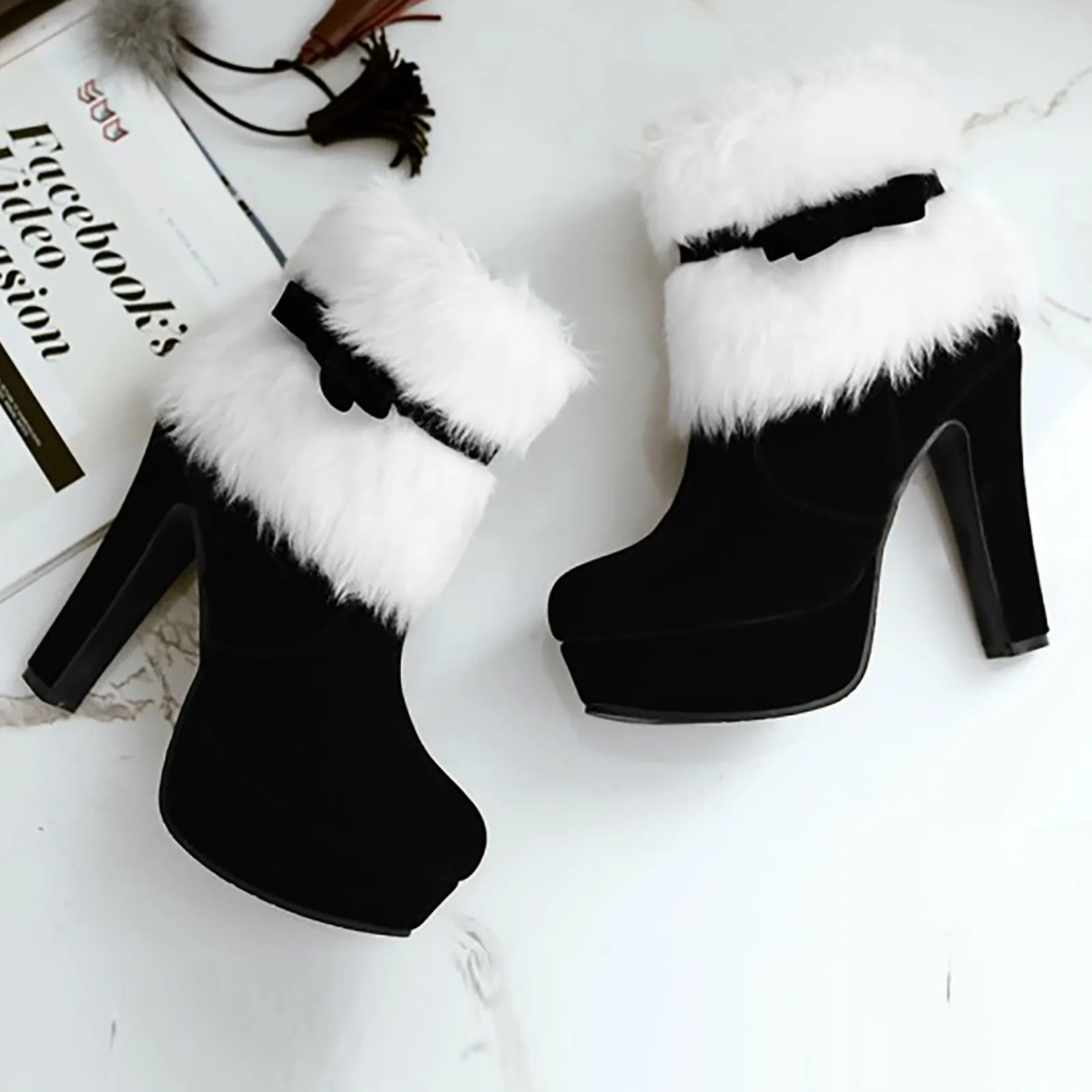 Рождественские женские ботинки, Зимние Замшевые ботинки на Высоком толстом каблуке, обувь, элегантные женские ботинки на платформе с боковой молнией Botas Mujer
