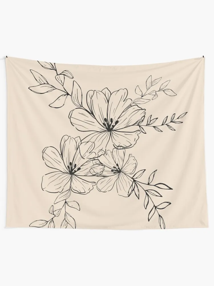 Абстрактный цифровой минималистский гобелен с изображением черных цветов и листьев