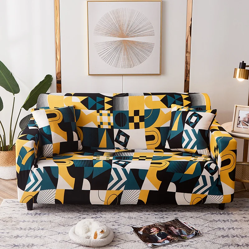 Чехол для дивана, эластичный, регулируемый, с геометрическим рисунком