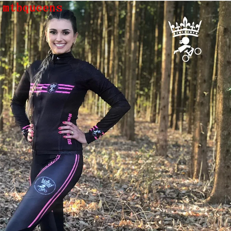 Женский комплект из джерси и длинных штанов с длинным рукавом Mtbqueens, одежда для велоспорта на весну и осень, одежда LONGA Ropa Ciclismo Maillot