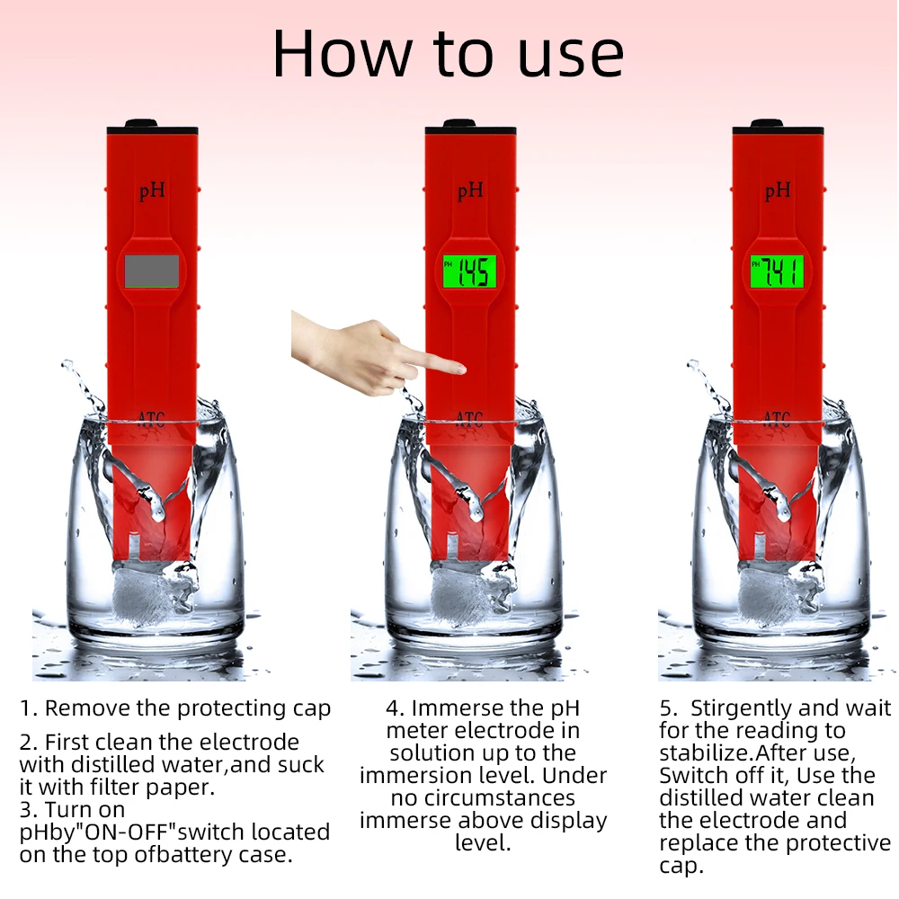 Этот измеритель pH в виде цифровой ручки является идеальным инструментом для аквариума, рыболовной промышленности, бассейна, школьной лаборатории, продуктов питания и напитков и т. д.Перед использованием калибруйте буферный раствор.