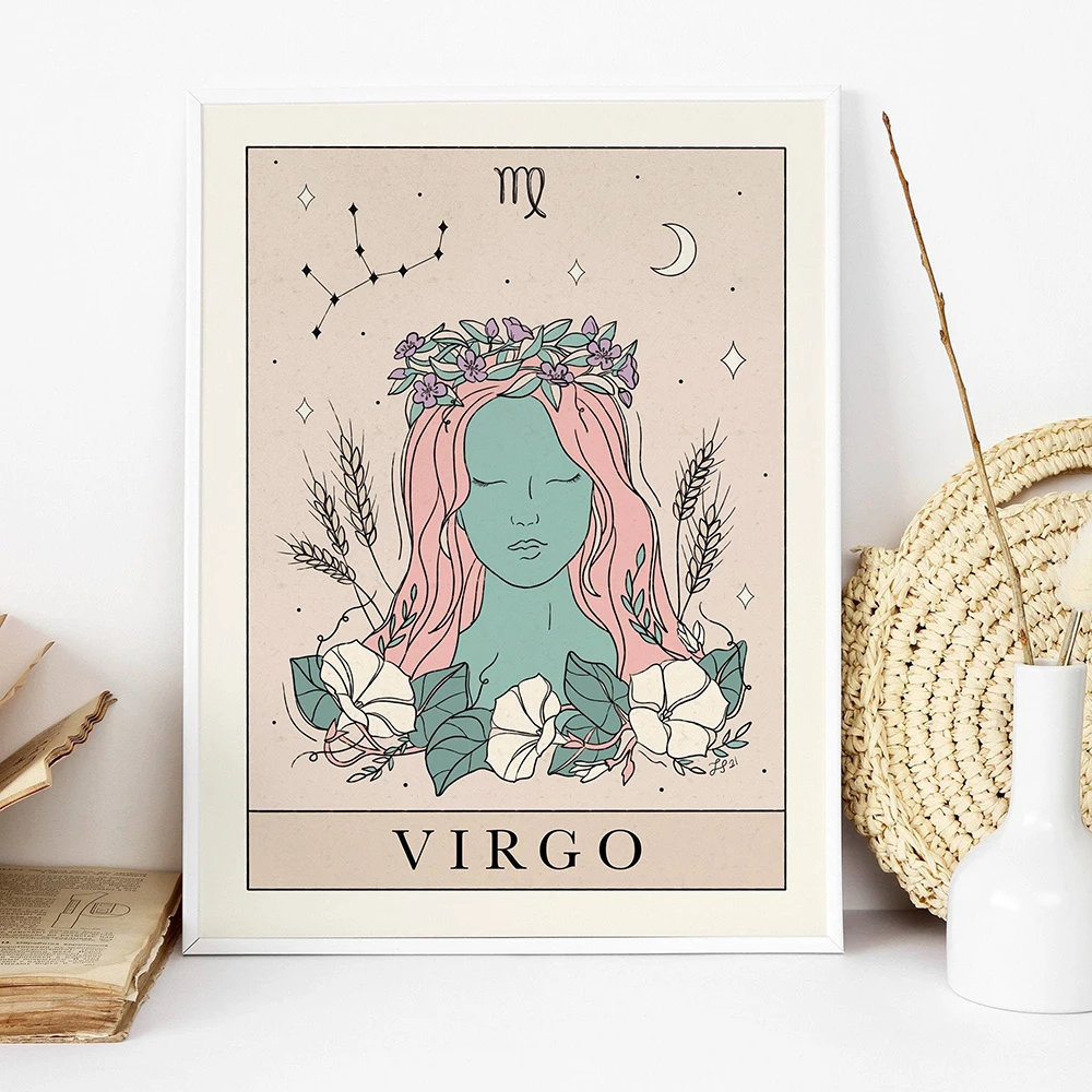 Богемный Зодиак, искусственный холст, картина, карты Таро, вдохновленная астрологией, дева, Водолей, близнецы, ведьма, картины, Декор