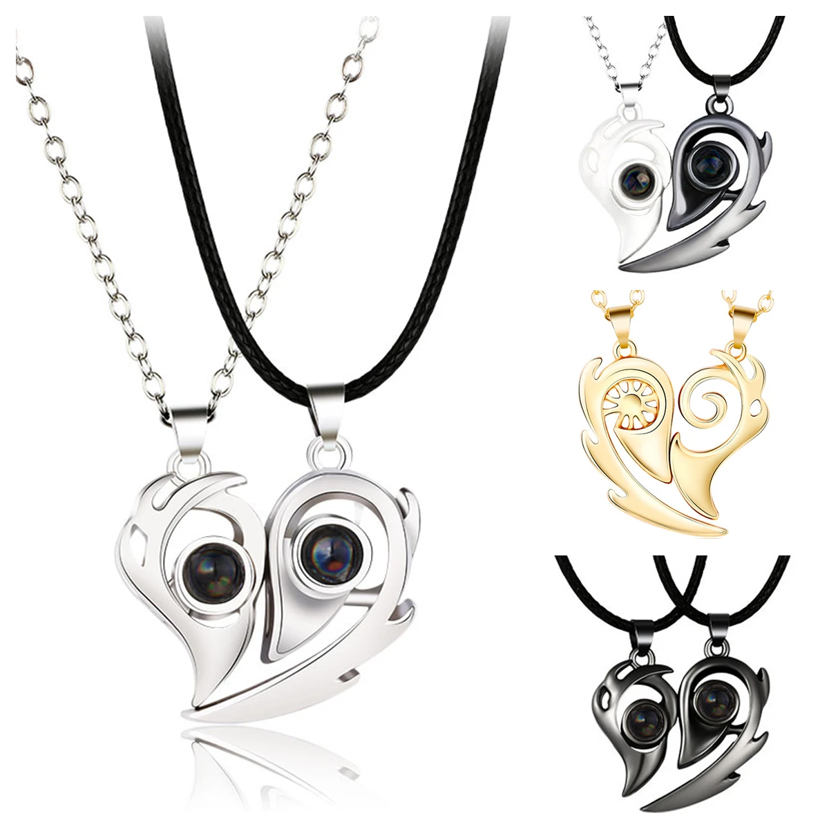 Новинка 2021, Очаровательное ожерелье для пары, 100 языков, проекционный кулон в виде сердца я люблю тебя, магнитные ожерелья для женщин, свадебный подарок для влюбленных