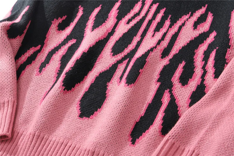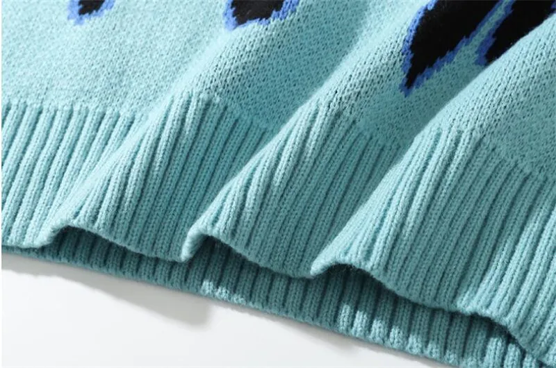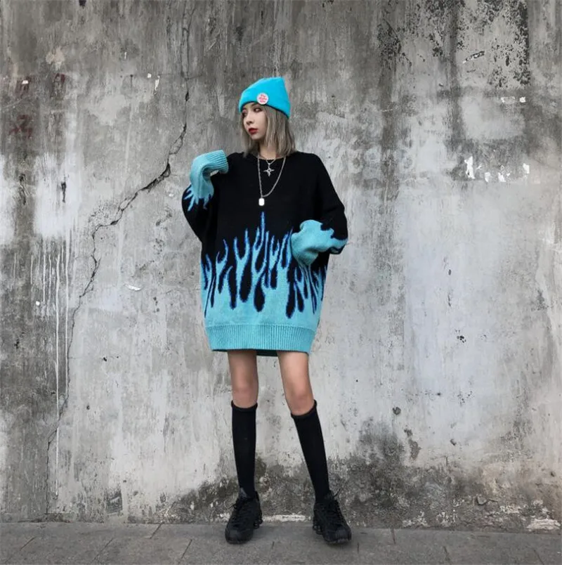 Вязаный свитер с голубым пламенем, мягкий японский плотный осенне-зимний новый 2021 просторный мужской и женский свитер с принтом в стиле хип-хоп