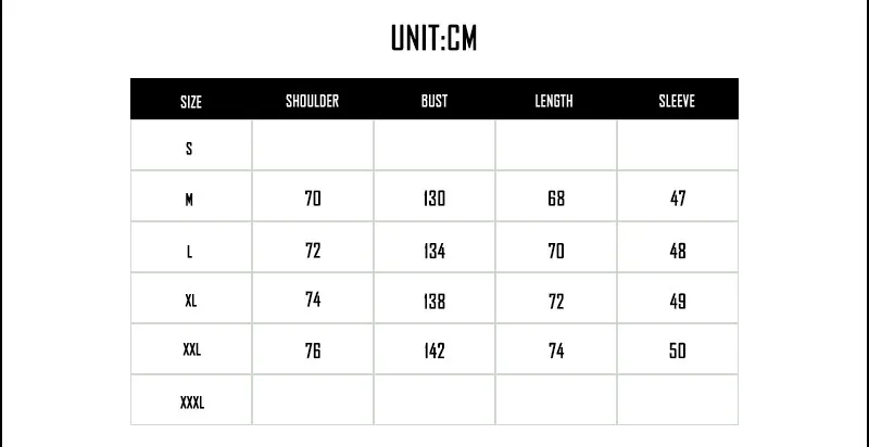 О размере1. Пожалуйста, обратите внимание, что Ниже указаны Азиатские размеры, Азиатские размеры на 2-3 размера меньше, чем европейские, американские, пожалуйста, обратите внимание на подробные измерения в таблице размеров.2. Таблица размеров выше относится к размерам одежды, а не к измерениям вашего тела.3. Если ваши измерения между двумя размерами, пожалуйста, выберите следующий больший.4. Замеры сделаны вручную, поэтому возможны отклонения на 1-3 см.5. Если у вас возникнут какие-либо вопросы, свяжитесь с нами перед покупкой, мы выберем подходящий вам размер.6. (1 см = 0,39 дюйма, 1 дюйм = 2,54 см.)7. Предлагаем вес> на основе нашего многолетнего опыта, чтобы обеспечить, но только для справки. Если вы не уверены в этом. Пожалуйста, свяжитесь с нами.2. Как правило, размер рубашки должен быть больше размера груди. Например, если ваш размер груди 100, вы должны выбрать 104 или 108Из-за ручного измерения, пожалуйста, учитывайте разницу в 1-3 см.