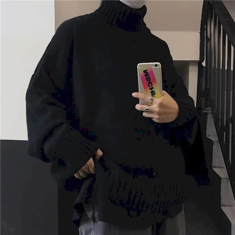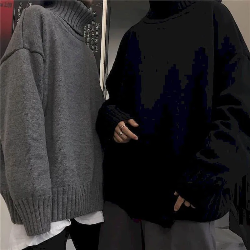 Зимняя водолазка для пары, свитер, корейский Свободный тренд, необработанный стиль Instagram Хара Juku, плотный Мужской Свитер оверсайз с отверстием для ветра