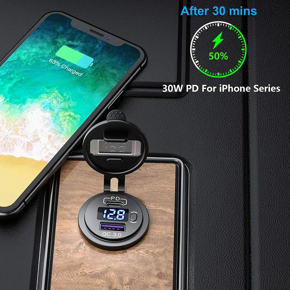 Водонепроницаемый Тип C PD QC3.0 USB 12V автомобильный адаптер для ...
