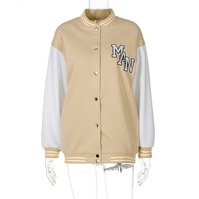 Женская куртка с длинным рукавом, свободная бейсбольная куртка большого размера с длинным рукавом и буквенным принтом, модель Y2k хаки на осень и зиму, 2021